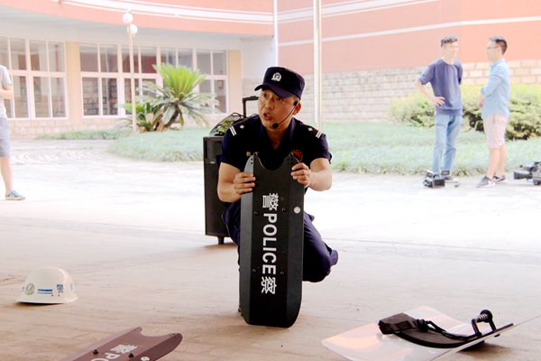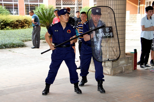 此次活动分为校园防暴恐应急训练分理论讲解和实战操练作两个环节。在理论讲解环节,主讲教官首先结合校园安全管理实际,利用生动的PPT内容,围绕校园人防、安保设置、校园技防建设、出租房屋及外来人员管理、内保条例规定的职责、法律赋予的权利等内容进行了细致地讲解,重点介绍了校园安防工作中如何发现违法犯罪和处置违法犯罪等问题,并建议师生员工在遇到以上问题时要及时向公安机关报警和求助。