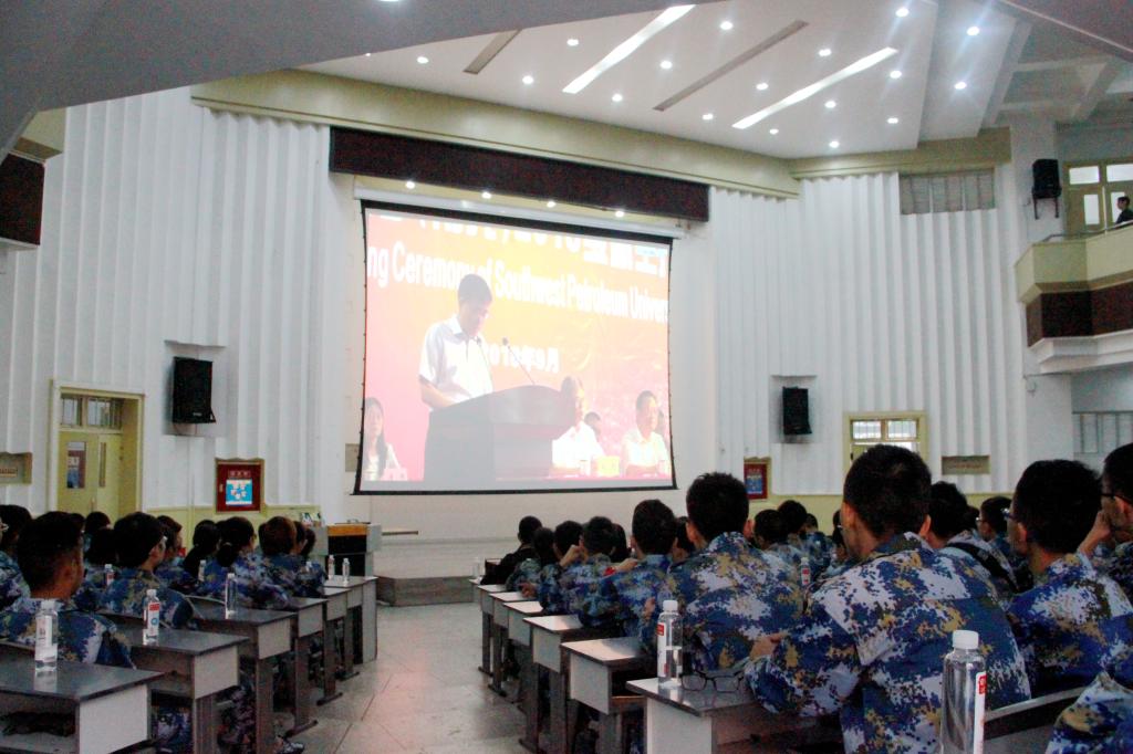 典礼开始前,南充校区2018级全体新生还观看了西南石油大学宣传片、南充市城市宣传片。