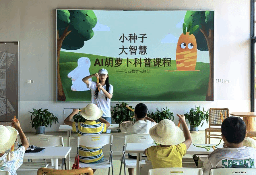 杨宗琼奶奶将“想借手机跟孙辈视频”的字条塞进竹筒,三天后,队员唐靖文便上门帮她了却心愿;村民念叨“孙子暑假没人带”,实践队随即开设“AI 科普小课堂”,孩子们用 AI 识别豆类、制作胡萝卜手工,晒谷场回荡着欢声笑语。