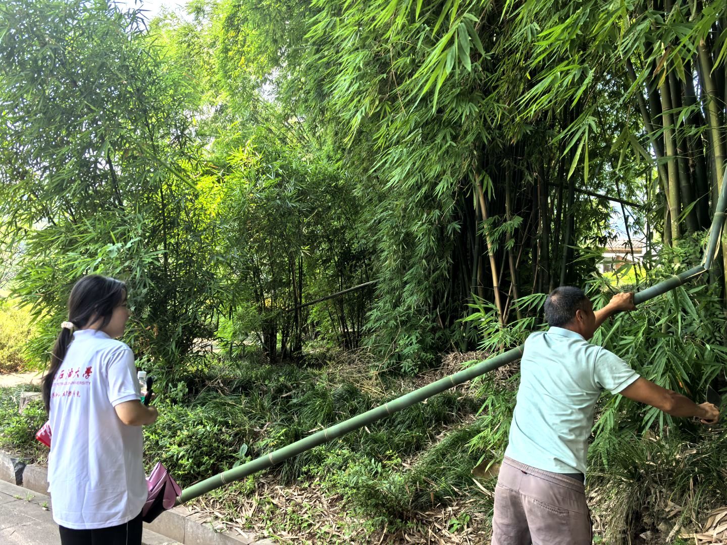 “锯这段,这段直!”竹林里传来了雷得令的吆喝声。只见他手握篾刀,目光锐利,一刀下去,竹子瞬间裂开一道整齐的口子,顺势再劈,啪的一声脆响,竹子便倒地。“大学生娃娃记住,刀要斜着下,竹节才不会裂,斜45度入竹最省力!钻孔时,要顺着纹理走!”竹屑纷飞间,钻头在传统智慧与现代科技的交汇点破壁。