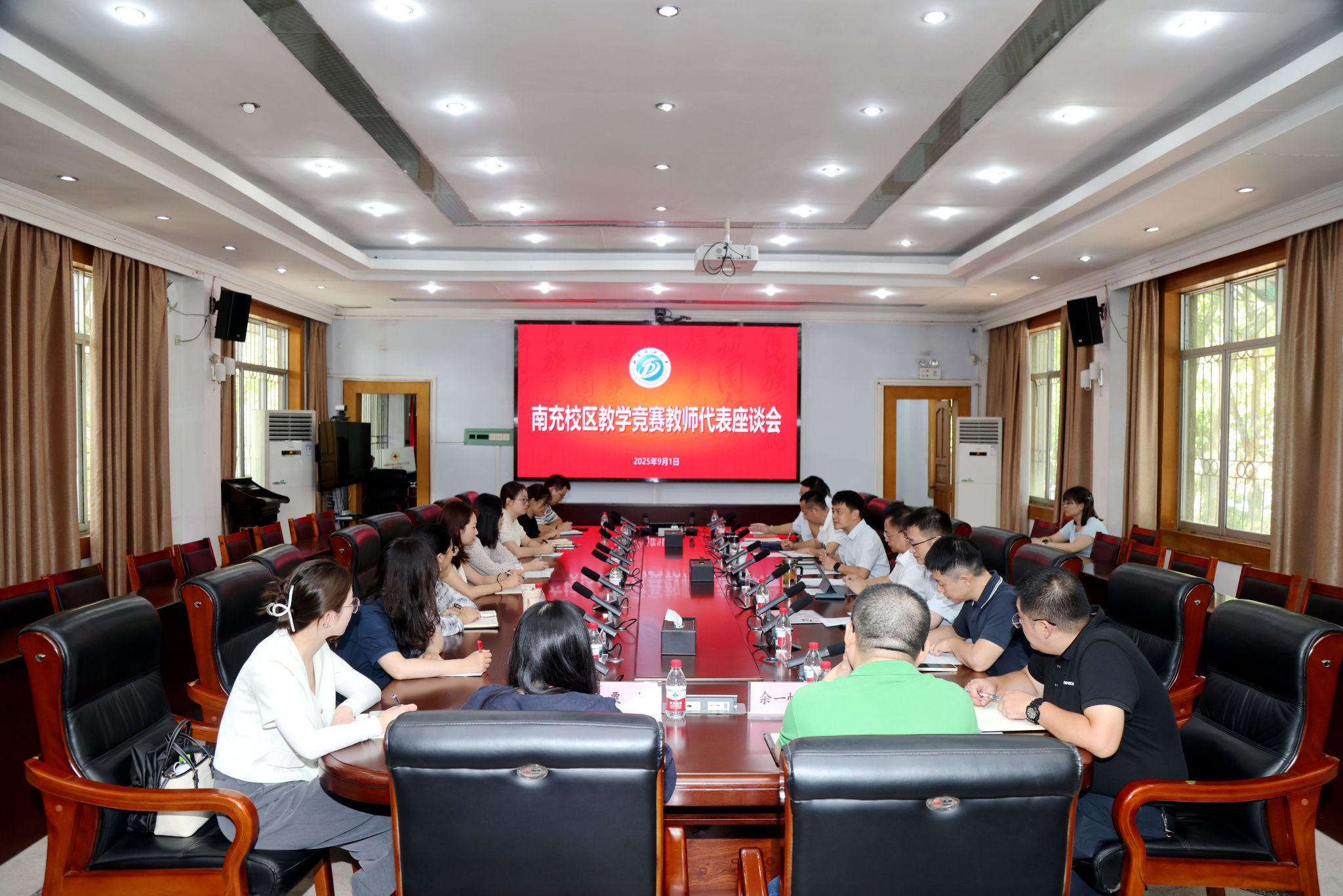 检查结束后,周莹与南充校区参加或指导竞赛的教师代表座谈。与会教师代表汇报了参加教学竞赛、指导学科竞赛取得的成果、遇到的困难及下阶段工作计划,分享了参加或指导竞赛的收获,就建立更完善的竞赛指导体系、资源支持、基础保障、奖励激励机制等内容提出了建议。周莹对各位老师的辛勤付出表示感谢,鼓励大家要结合自身实际,找准职业发展方向,立足现有资源优势,既要扬长避短,又要尽快补齐短板,并要求学校相关职能部门要深入调研校区教师参加或指导竞赛面临的困难,精准对接需求,思考如何将两校区有限的资源错位配置,进一步推动学校教师竞赛、学生学科竞赛取得更好的成绩。
