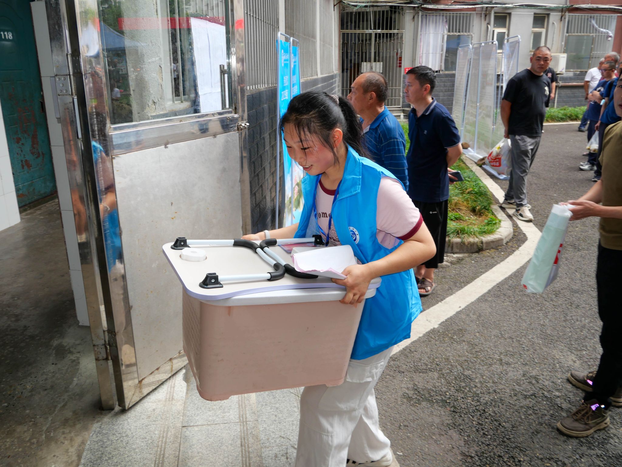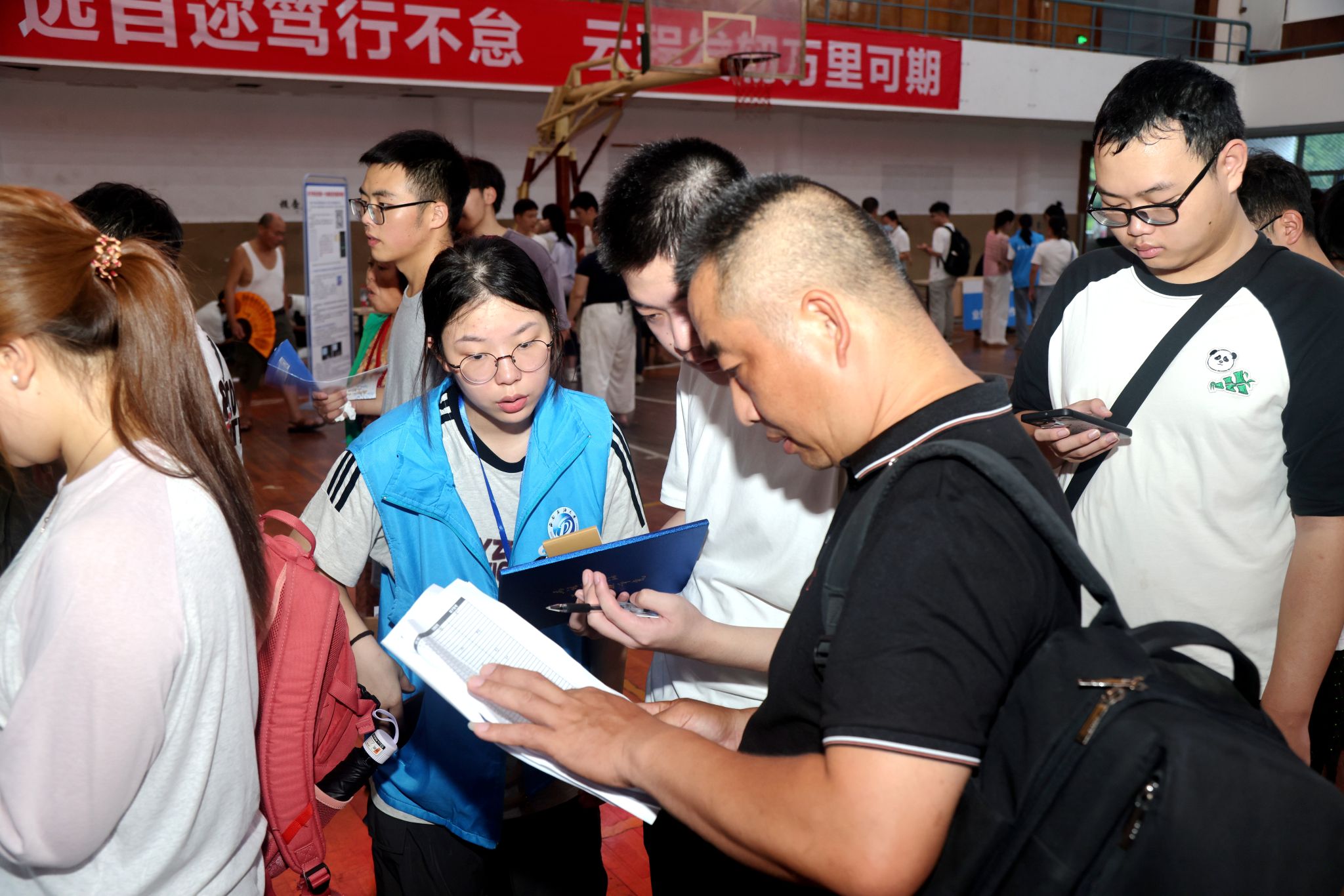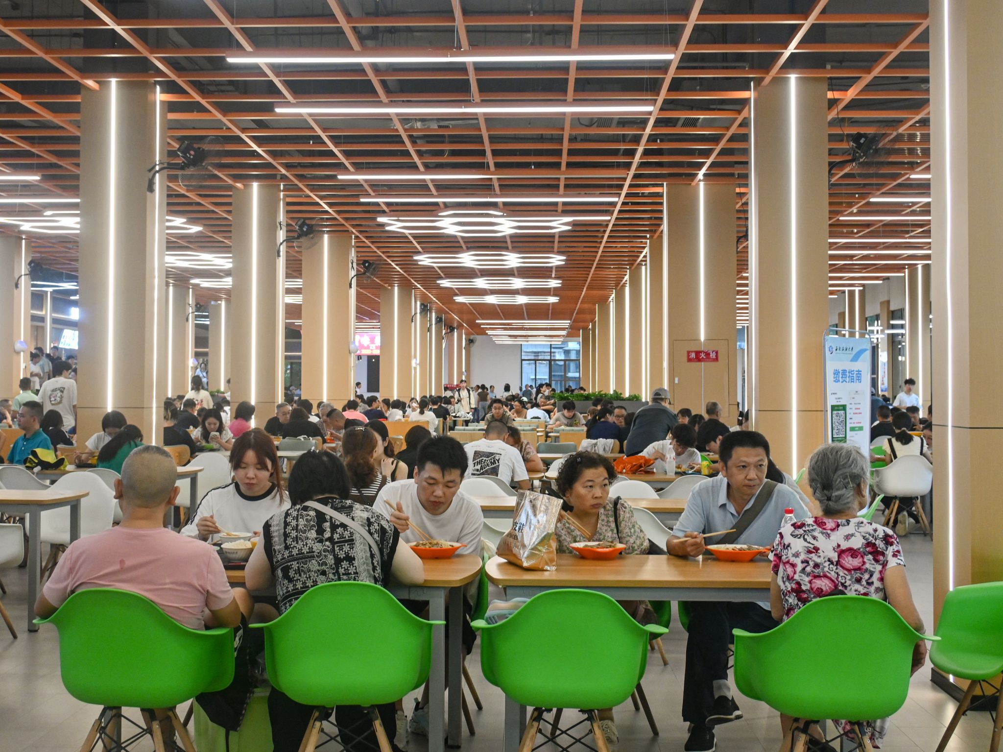 联合办公区不仅布置了大功率风扇,还贴心地放置了冰块降温,系列举措让家长们好评不断:“一进来就感觉特别凉快,还有志愿者递水、引导休息,天气虽热,但心里特别清爽!”同时,为方便远道而来的新生和家长休息,校区还将体育馆二楼和学生食堂作为家长休息区。