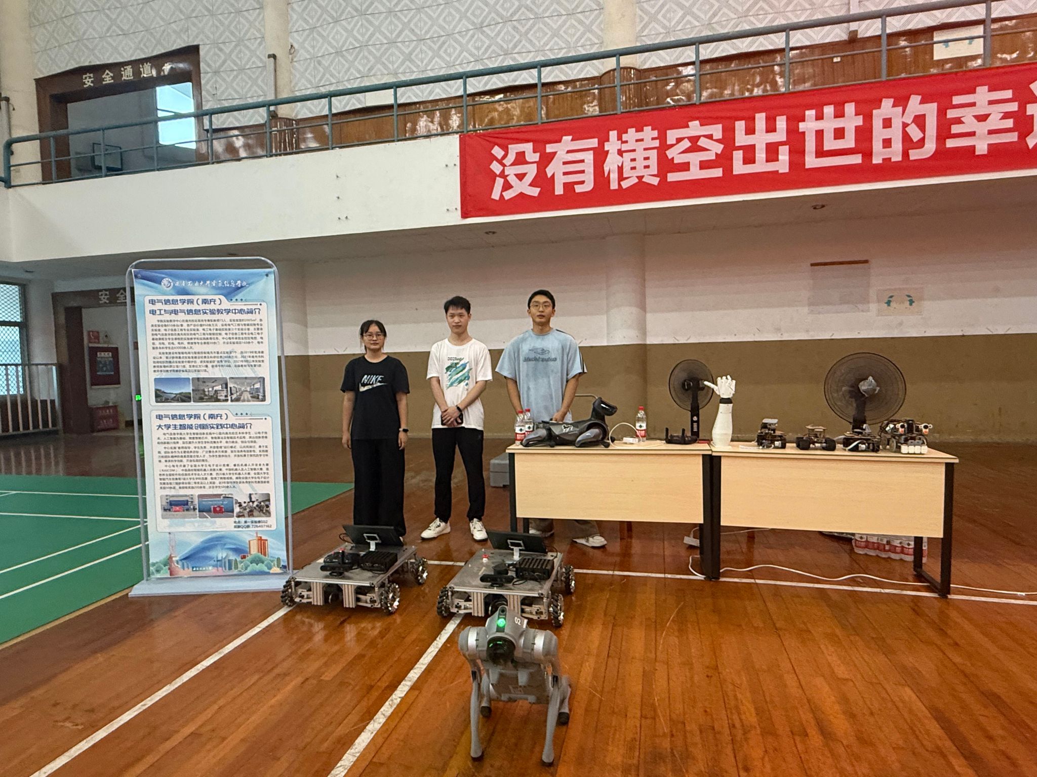电气信息学院、工程训练中心在体育馆内举办了科技展览,集中展示了机器人、智能车、无人机等学生学科竞赛优秀作品,吸引大量新生与家长驻足互动。“没想到刚入学就能看到这么多‘黑科技’,更加期待今后的专业学习了!”一位电信院新生兴奋地说。