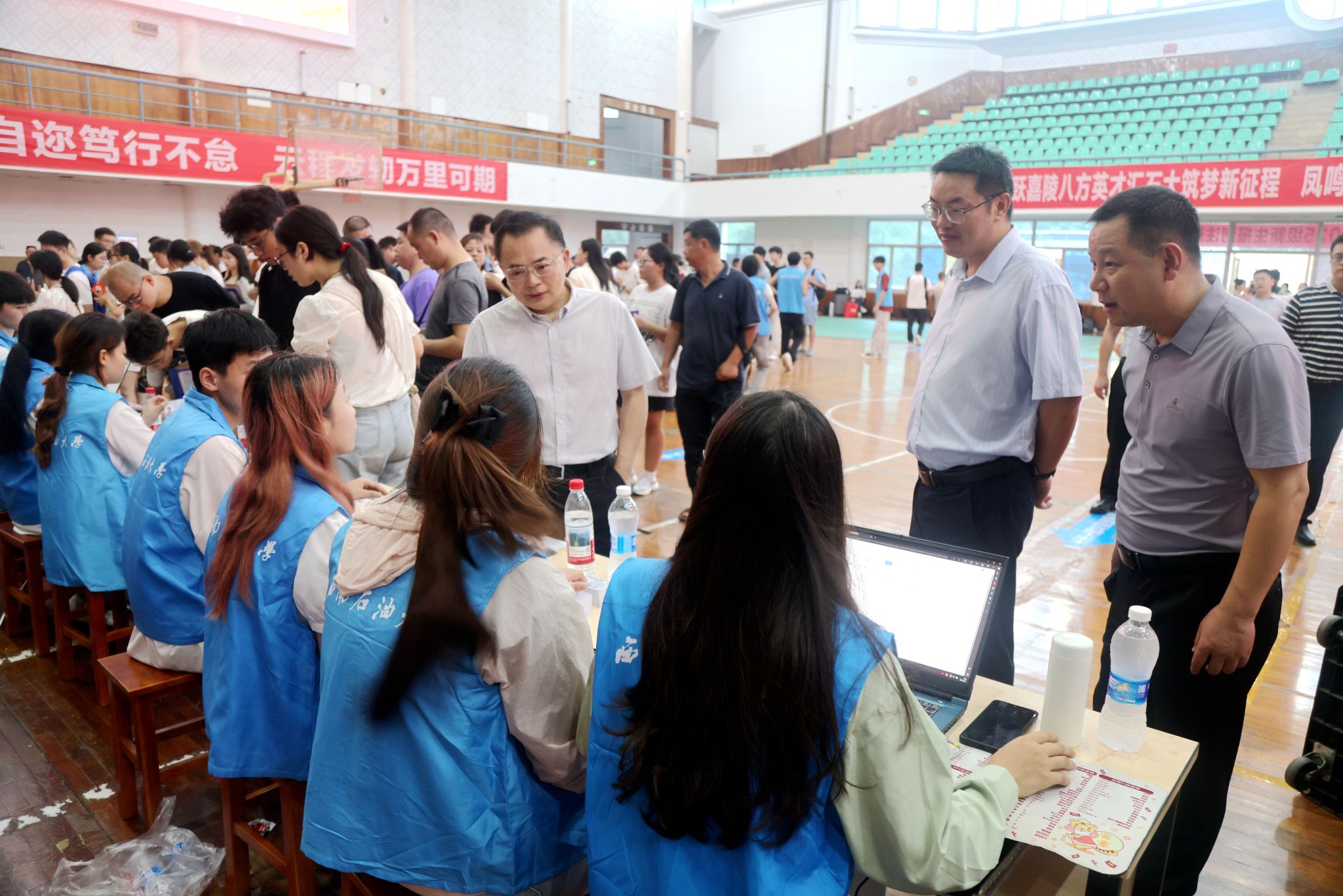 南充校区领导方可、覃鸿飞、郝江岭、谌贵辉、刘恒、李平走进各迎新工作服务站、新生报到注册联合办公区和新生宿舍、食堂,仔细了解各迎新工作小组的进展,从志愿者调度、物资补给到流程衔接等细节逐一核实,确保各项服务高效落地,为新生逐梦保驾护航。并与新生及家长亲切交谈,细致询问报到流程体验、住宿生活需求,鼓励新生尽快适应校园生活。
