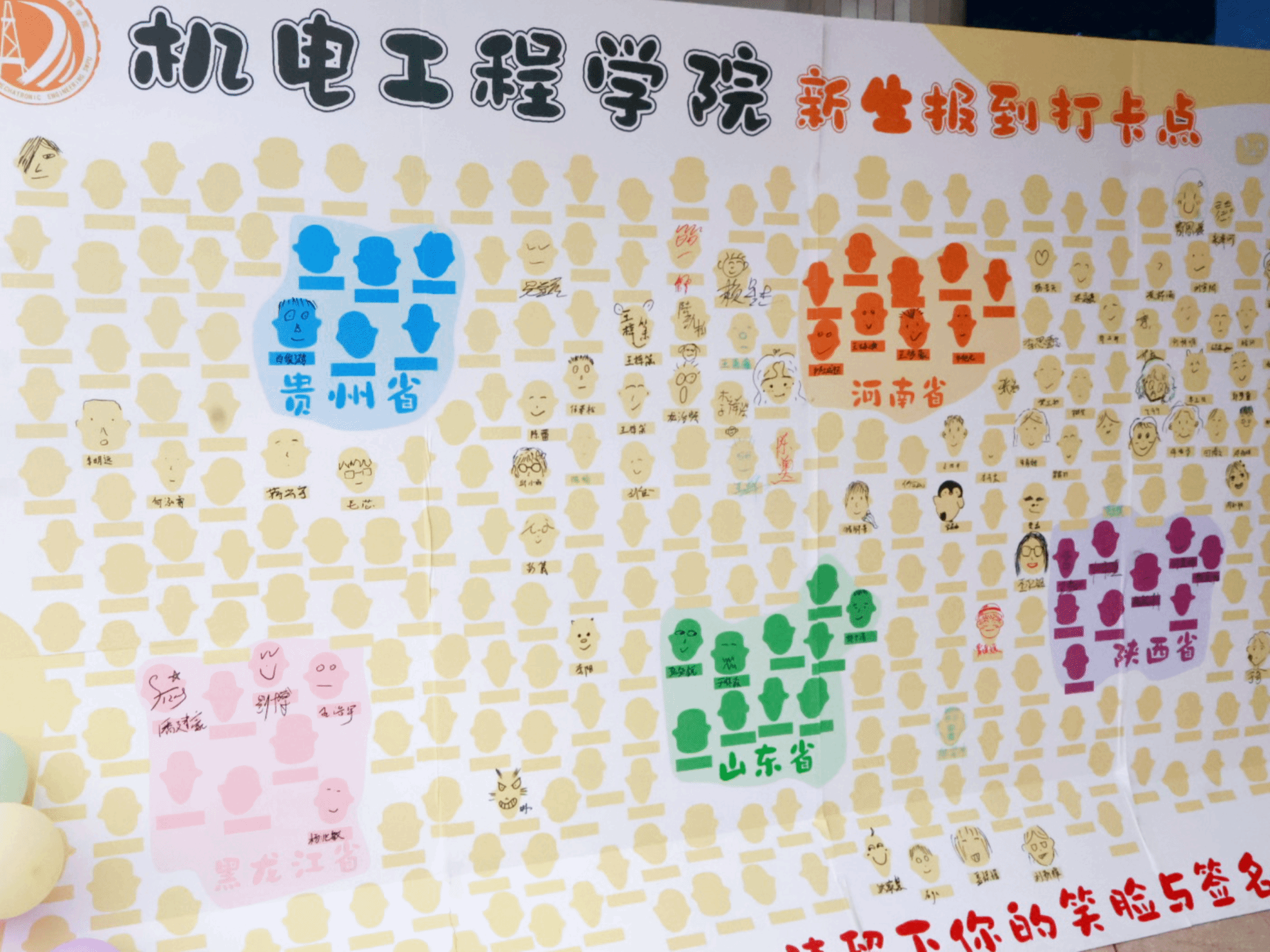 各学院延续往年优良传统,推出一系列暖心迎新举措。机电院设置的特色签名墙,引来了大量新生驻足。来自河南的机电工程学院新生王姝涵开心地分享:“学院的签名墙设计得太贴心了,按省份来划分新生签名区域,让我很快就找到了同乡的同学,感觉特别亲切!”