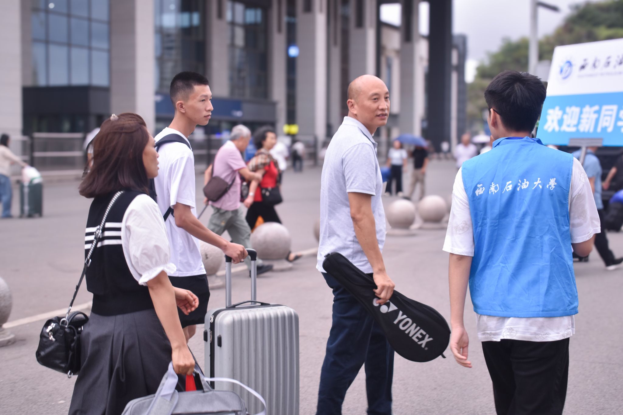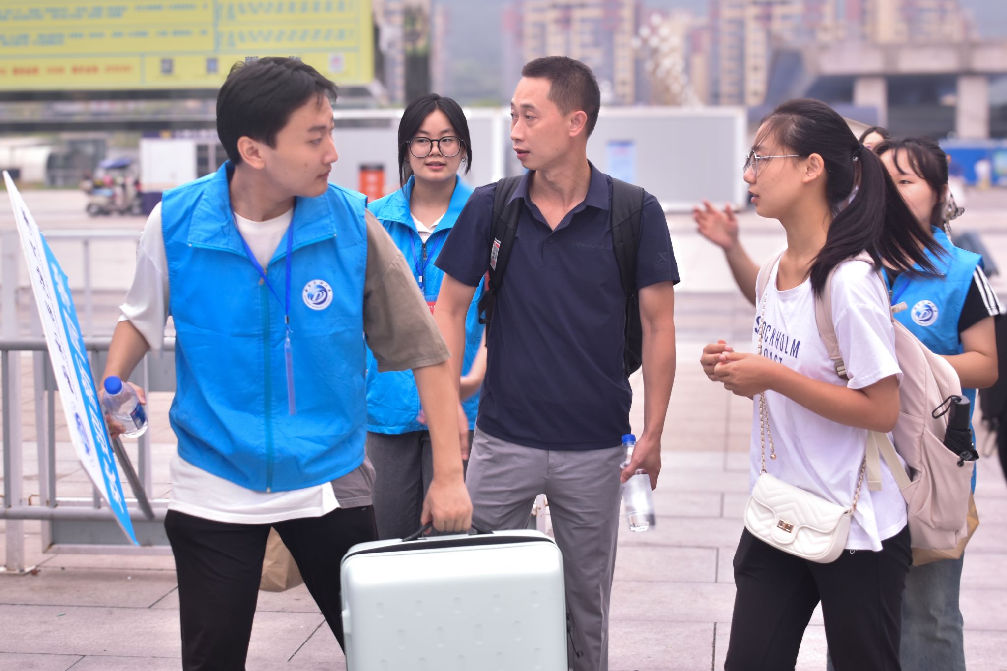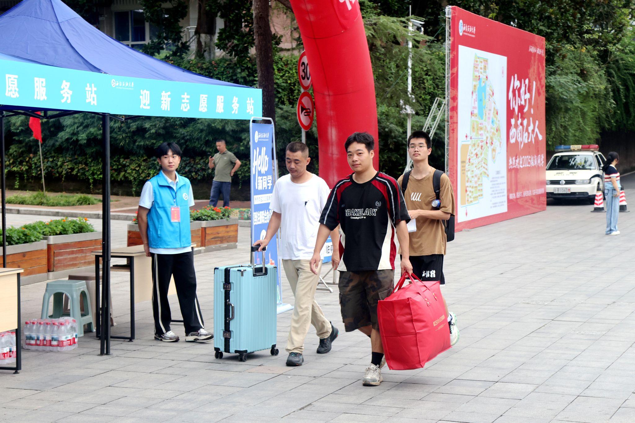 “同学请跟我来,宿舍在这边!”“行李交给我!”一抹抹活跃的“志愿蓝”成为校园中最动人的风景。今年,校区招募高年级学生担任迎新志愿者,加强岗前培训,在南充火车站、南充火车北站、嘉陵汽车站和校门口、宿舍区等多个点位安排了200多名校区学生志愿者,同时还有大量的学院志愿者活跃在各学院报到点处。