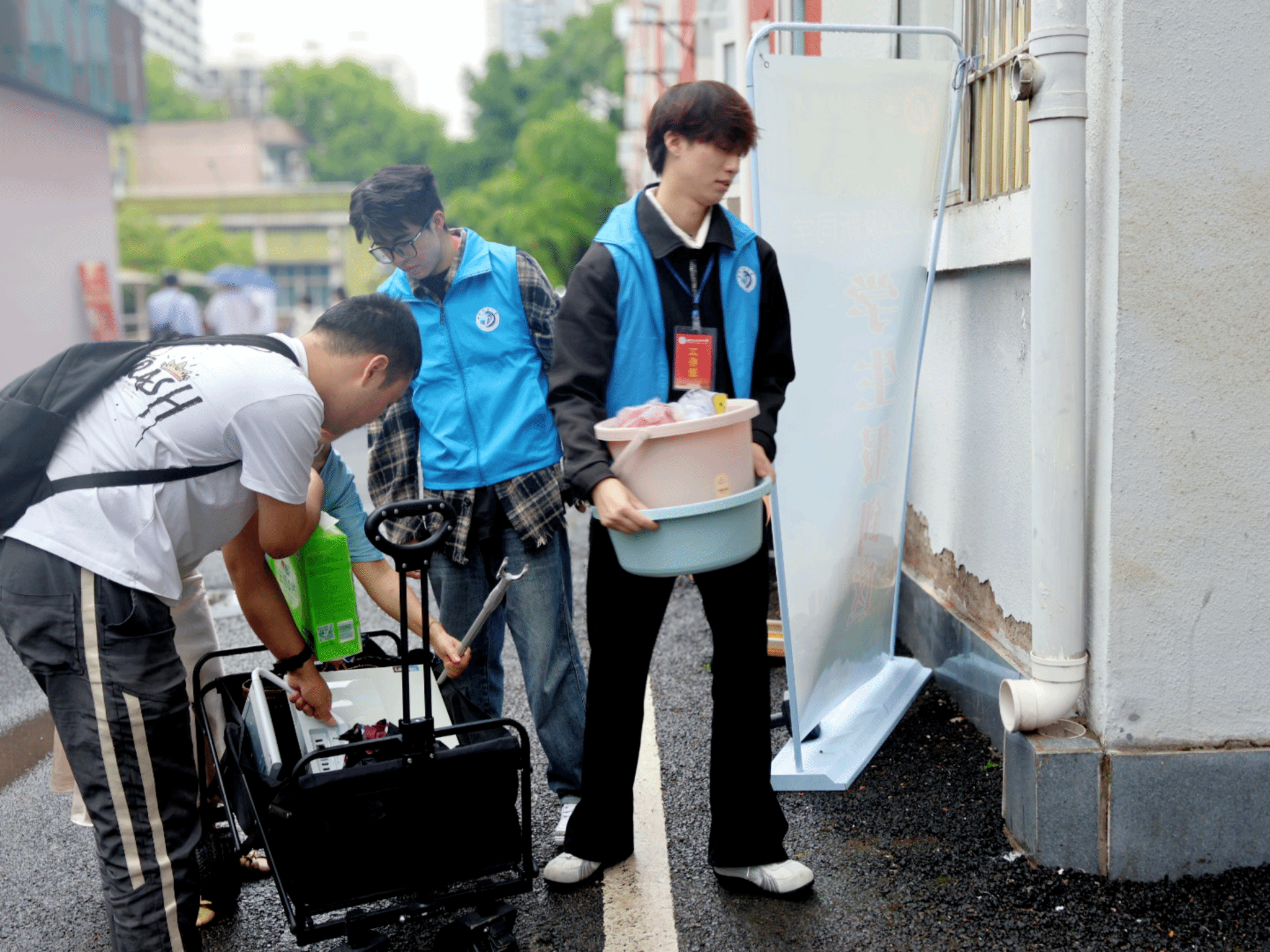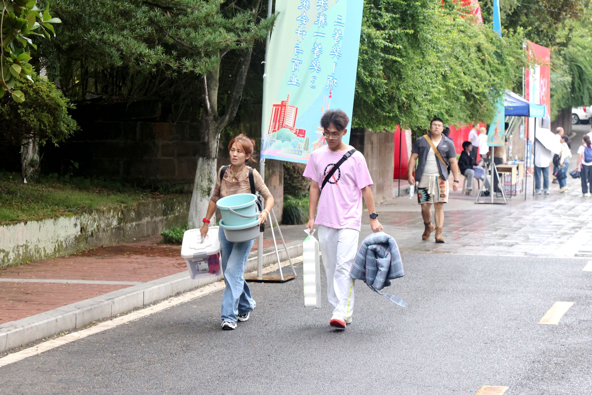 报到首日的天气格外闷热,志愿者们主动为新生及家长分发矿泉水;遇上突如其来的暴雨时,他们又及时递上一次性雨衣,守护每一位“小新柚”的报到之路。“刚进校门就下雨,正发愁呢,志愿者就送来了雨衣,真的太感谢了!”一位新生感动地说。