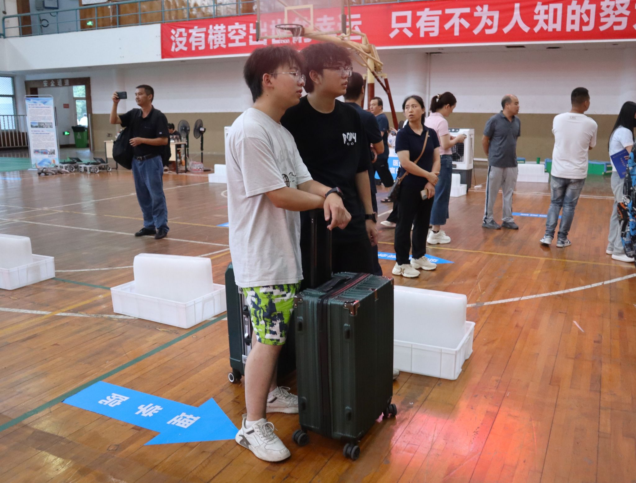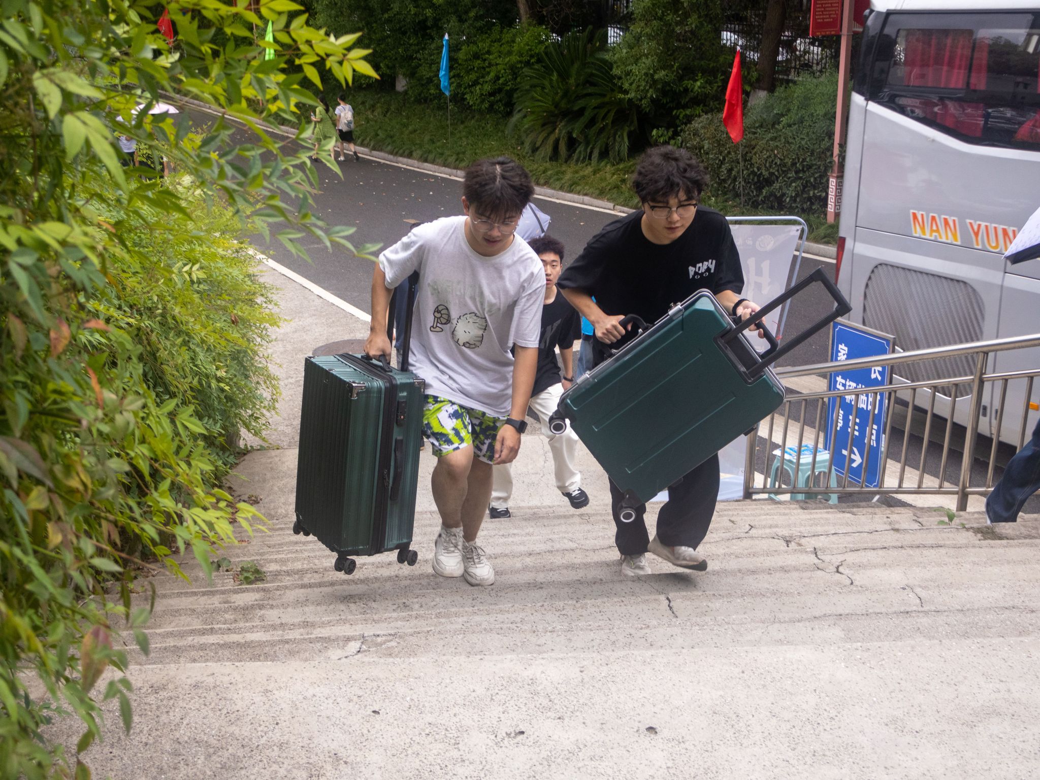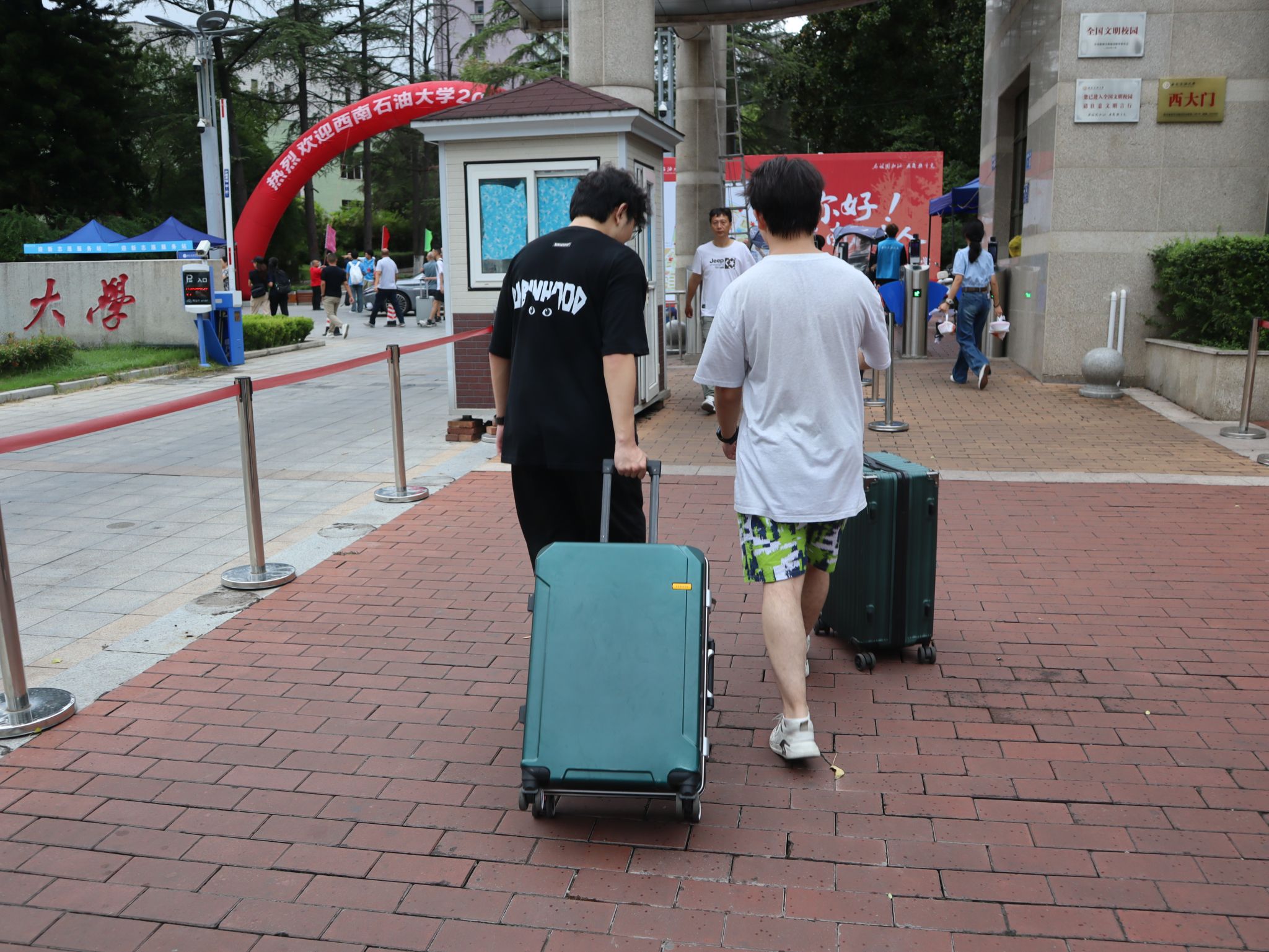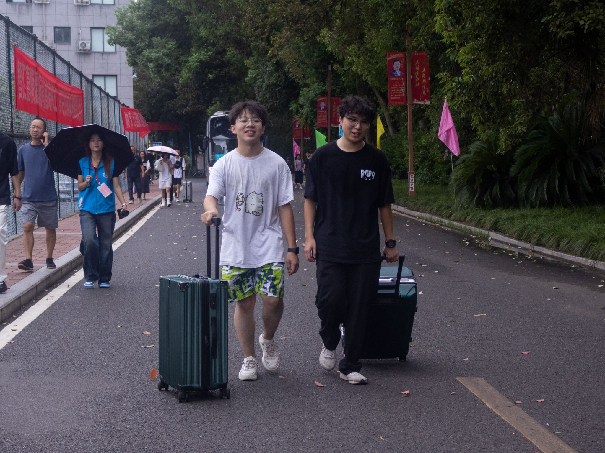 唐畅言与彭运一起前往新生报到注册联合办公区