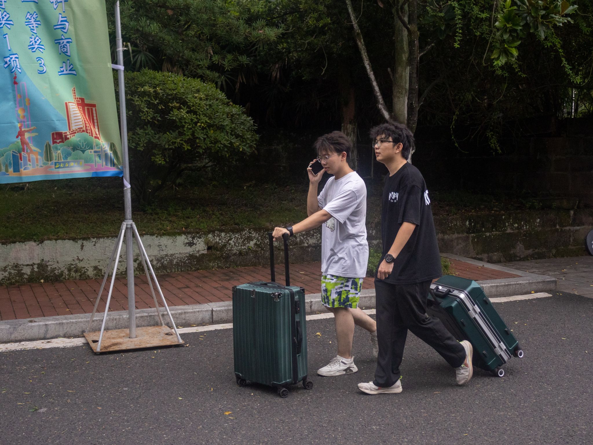 7月下旬,高考成绩公布,两人在班主任的高考录取情况统计表上发现考上了同一个大学同一个专业,更巧的是,两个人都考了570分。“看到分数,我跟唐畅言说‘太巧了,分数一样’,没多想。”彭运回忆,直到录取结果出来,两人微信上又互发录取通知书照片。“我盯着屏幕看好几遍,反复确认专业名,怕看错。”唐畅言说,确认消息后,两人直接约着去学校提前“探校”。