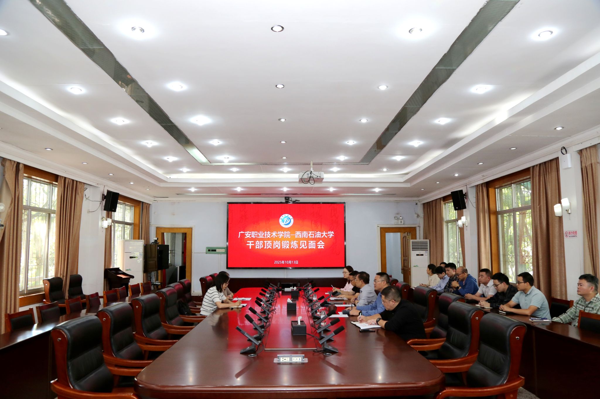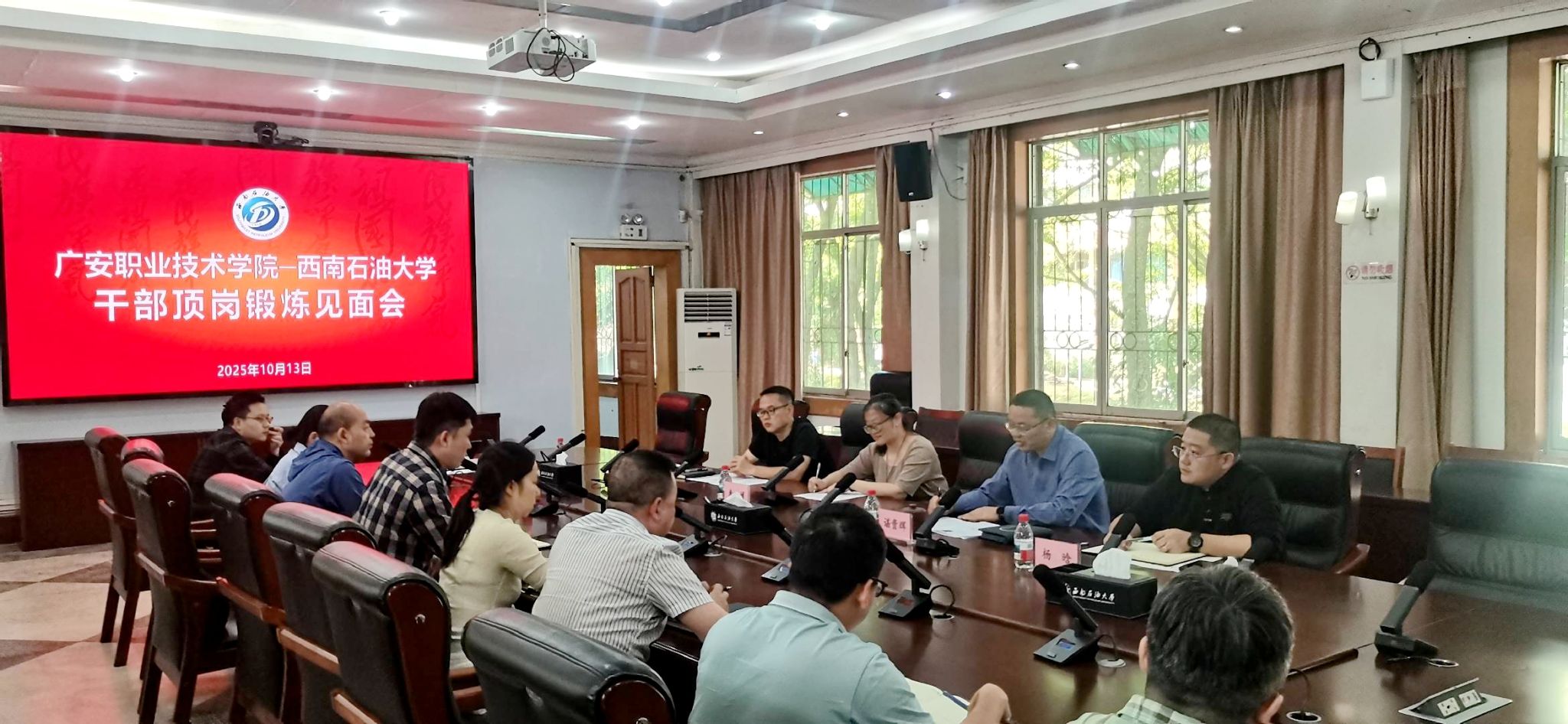 10月13日,南充校区与广安职业技术学院举行干部顶岗锻炼见面会,介绍了干部顶岗锻炼的具体安排。
