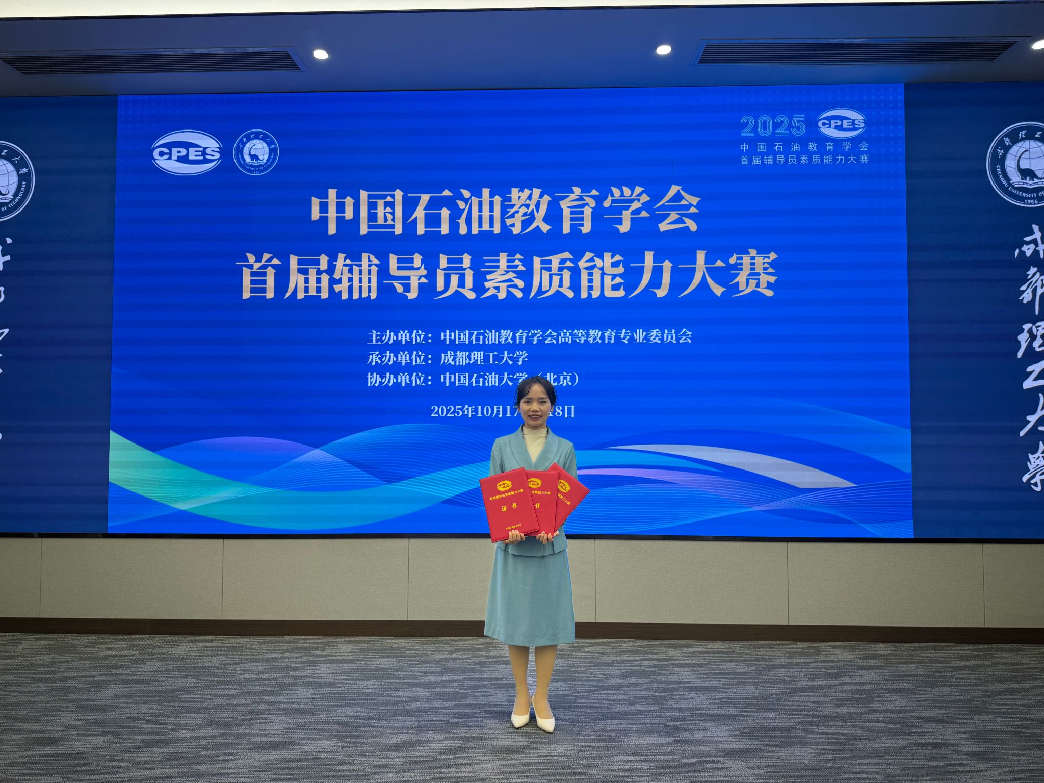 10月16日至17日,首届中国石油教育学会辅导员素质能力大赛在成都理工大学举办,南充校区辅导员、理学院学生工作办公室(团总支)主任薛静荣获特等奖。