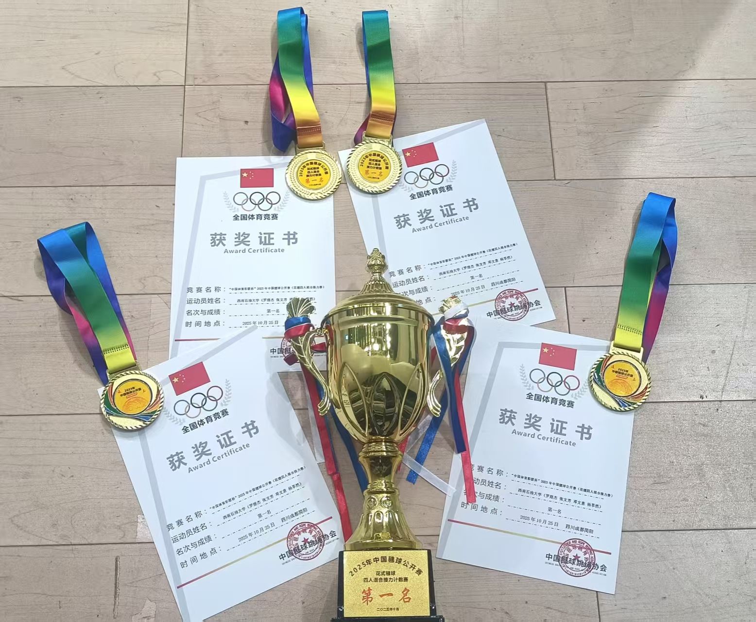 10月25日、26日,2025年中国毽球公开赛(四川成都简阳站)在简阳市文化体育中心体育馆举行。教务部文化素质与公共基础课教学中心教师牛美惠、许伟、李佳佳指导南充校区毽球代表队参赛,荣获花式毽球四人混合接力计数赛冠军、男子竞技三人赛第六名,学校荣获体育道德风尚奖。