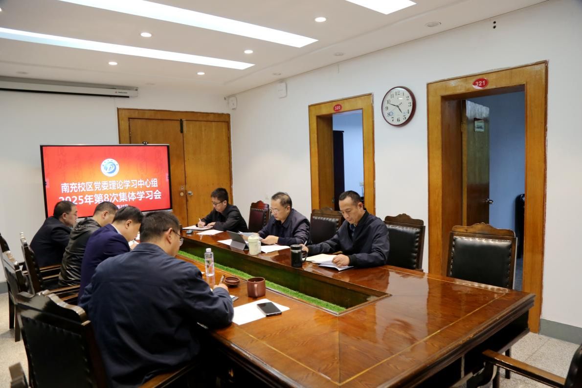 10月28日,南充校区党委理论学习中心组举行2025年第8次集体学习会,传达学习党的二十届四中全会精神。南充校区党委常务副书记方可主持会议并就学习贯彻落实全会精神作安排部署。南充校区党委副书记、常务副校长覃鸿飞,南充校区党委副书记郝江岭,南充校区副校长谌贵辉、刘恒、李平参加学习。