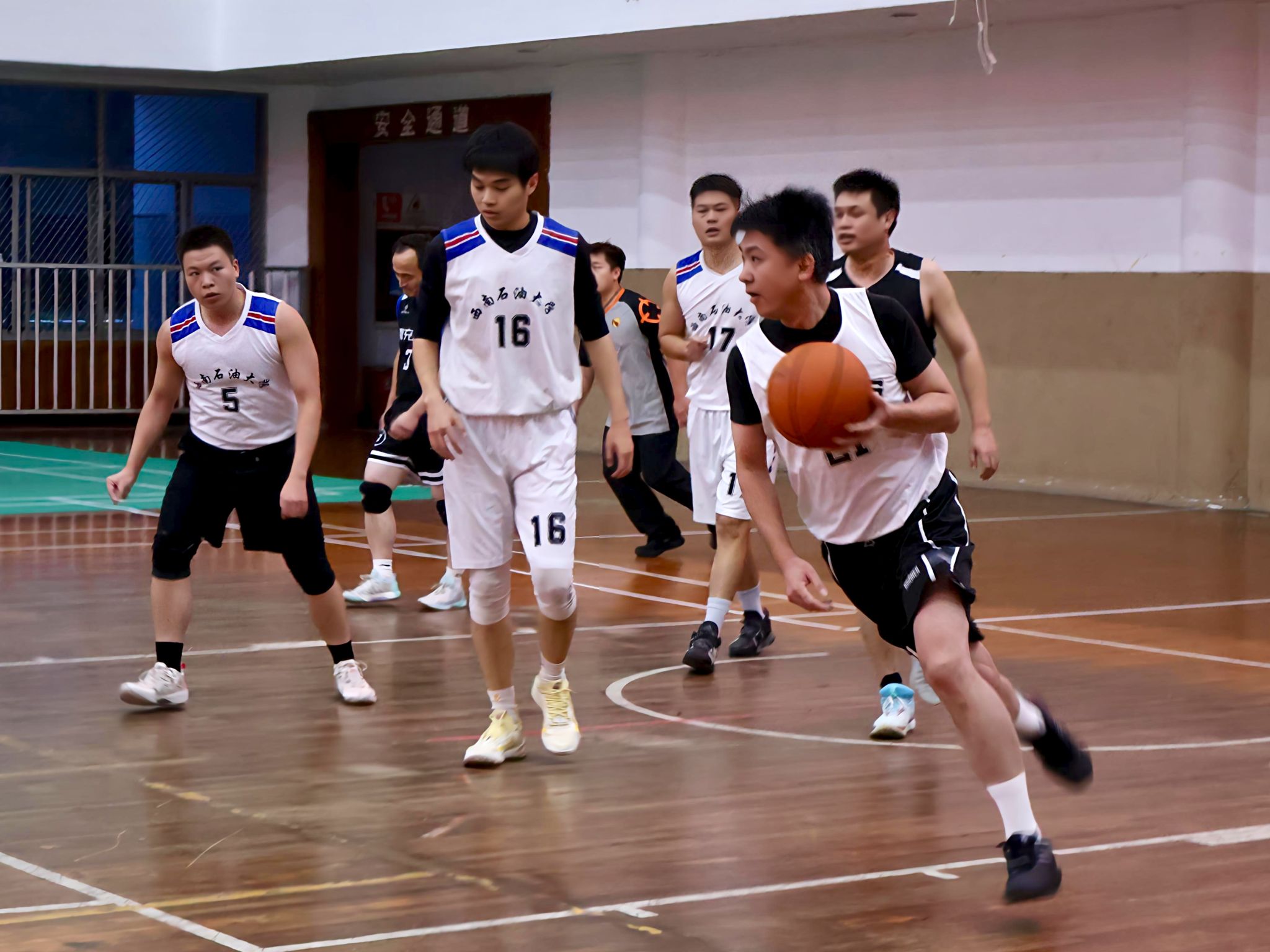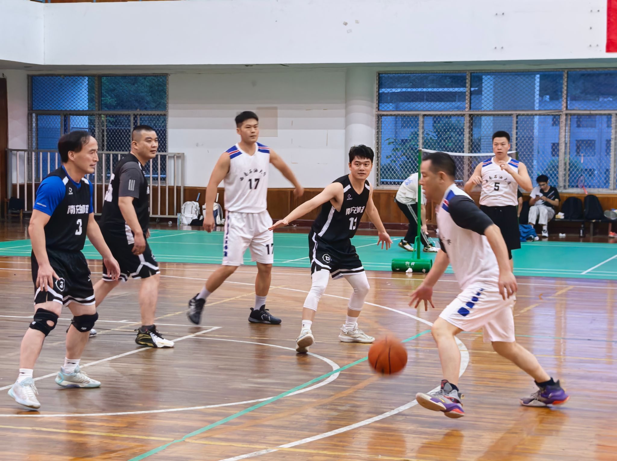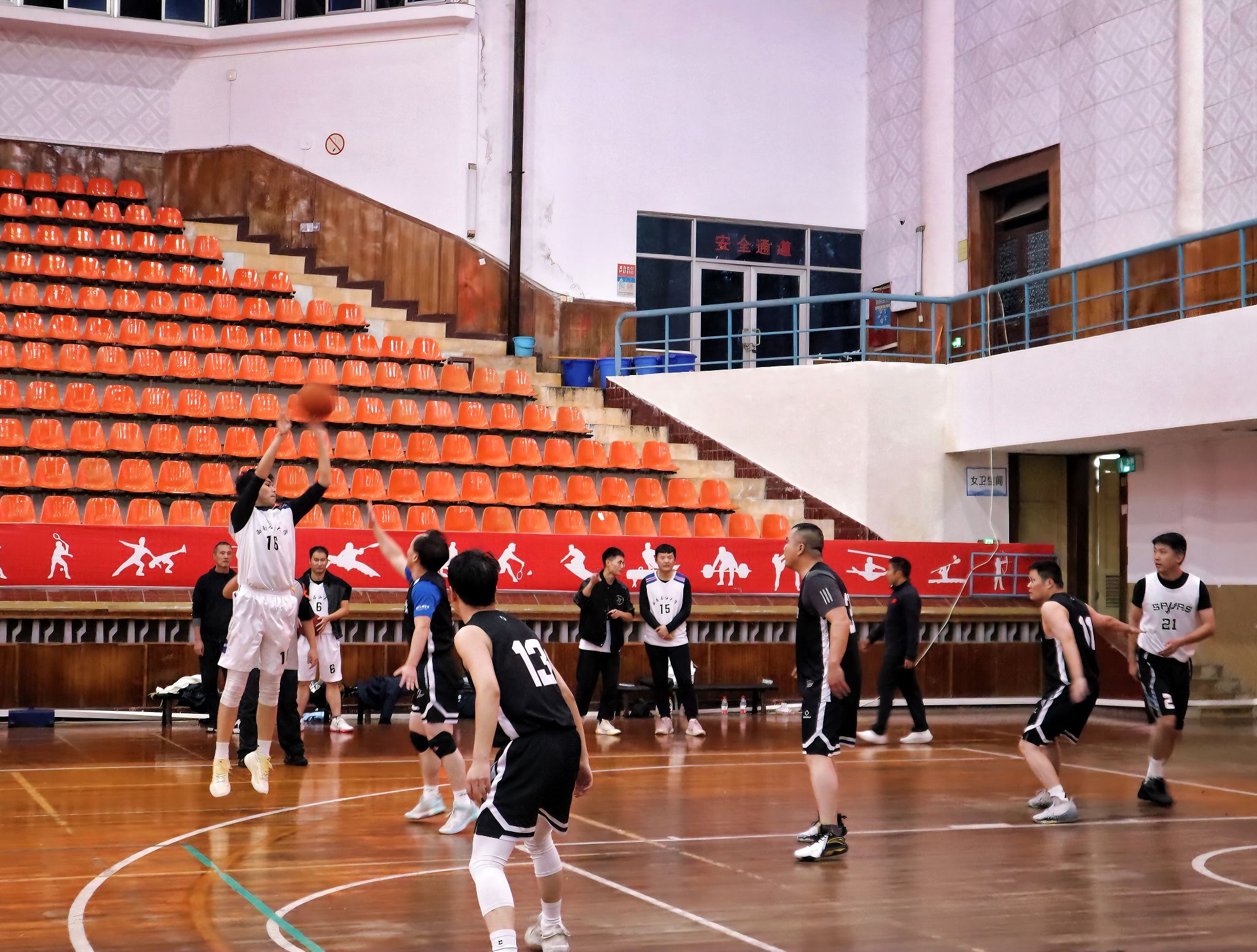 随着裁判一声哨响,比赛正式拉开帷幕。校区教职工篮协队员迅速进入竞技状态,队员间传球默契,凭利落跑位与精准投篮率先得分。邮政职工代表队毫不示弱,迅速稳住阵脚,抓住对方攻防转换间隙反击,通过默契配合寻找得分机会。双方你来我往,比分交替上升,赛场氛围渐热。下半场节奏陡然加快,校区教职工篮协队员调整战术,加强内线进攻,配合愈发流畅,一度领先9分;随后两队先后命中三分引得观众阵阵喝彩。面对差距,邮政职工篮球队迅速调整攻防策略,强化防守抢断,凭连续关键进球步步紧追,在比赛剩三分钟时反超1分,使比赛瞬间充满悬念。最后时刻,双方全力拼抢,每一次传球都扣人心弦。终场哨响,南充校区教工队以47:46的比分赢得胜利。