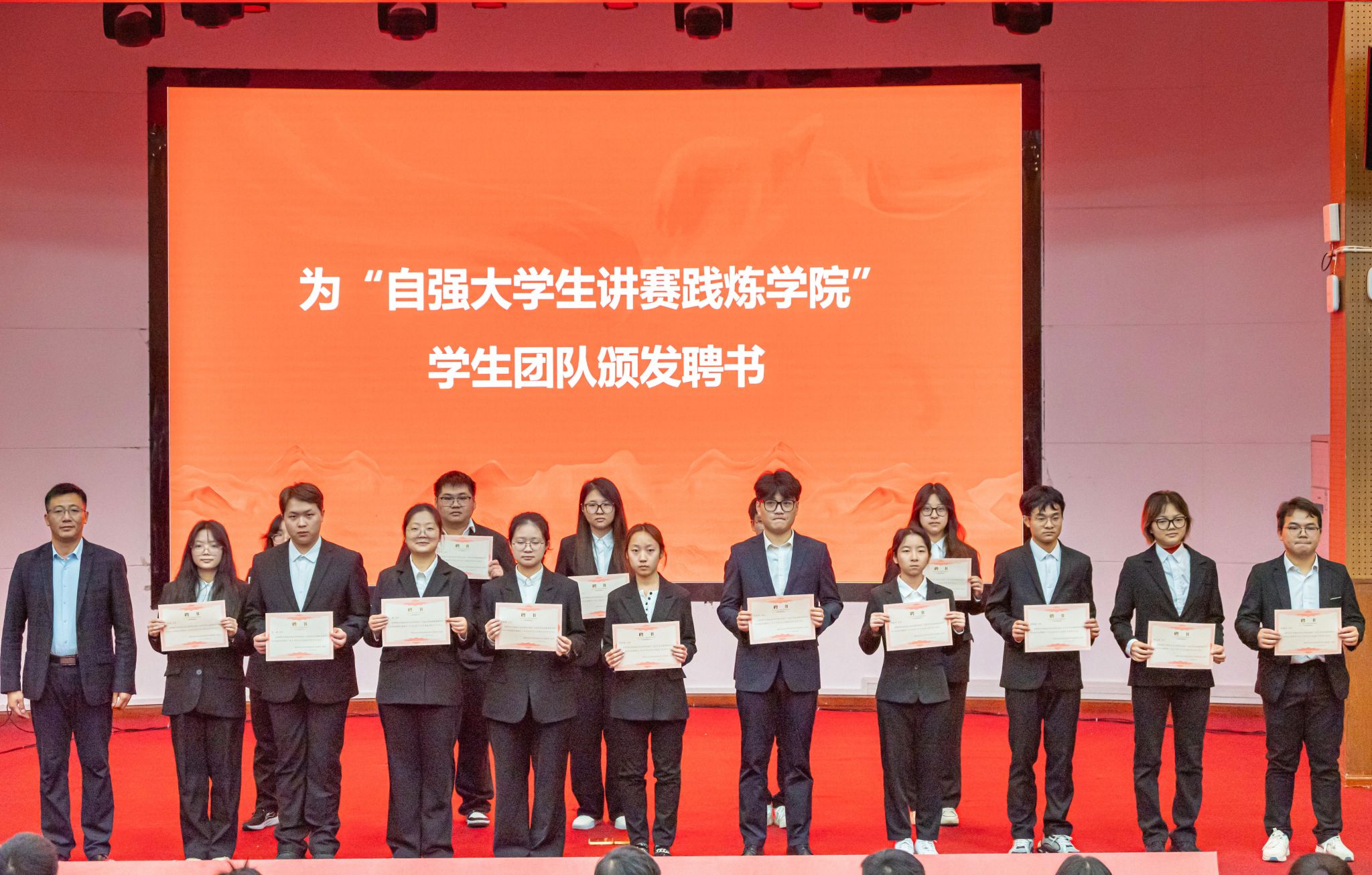 为“自强大学生讲赛践炼学院”学生团队颁发聘书