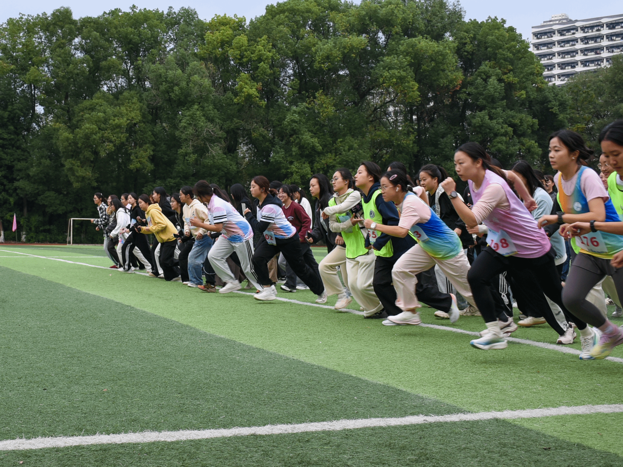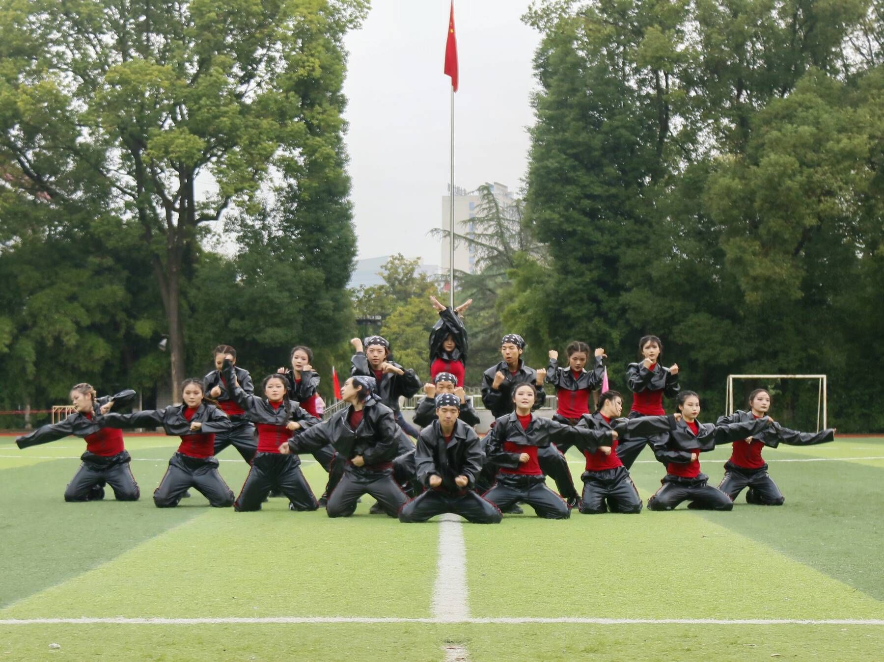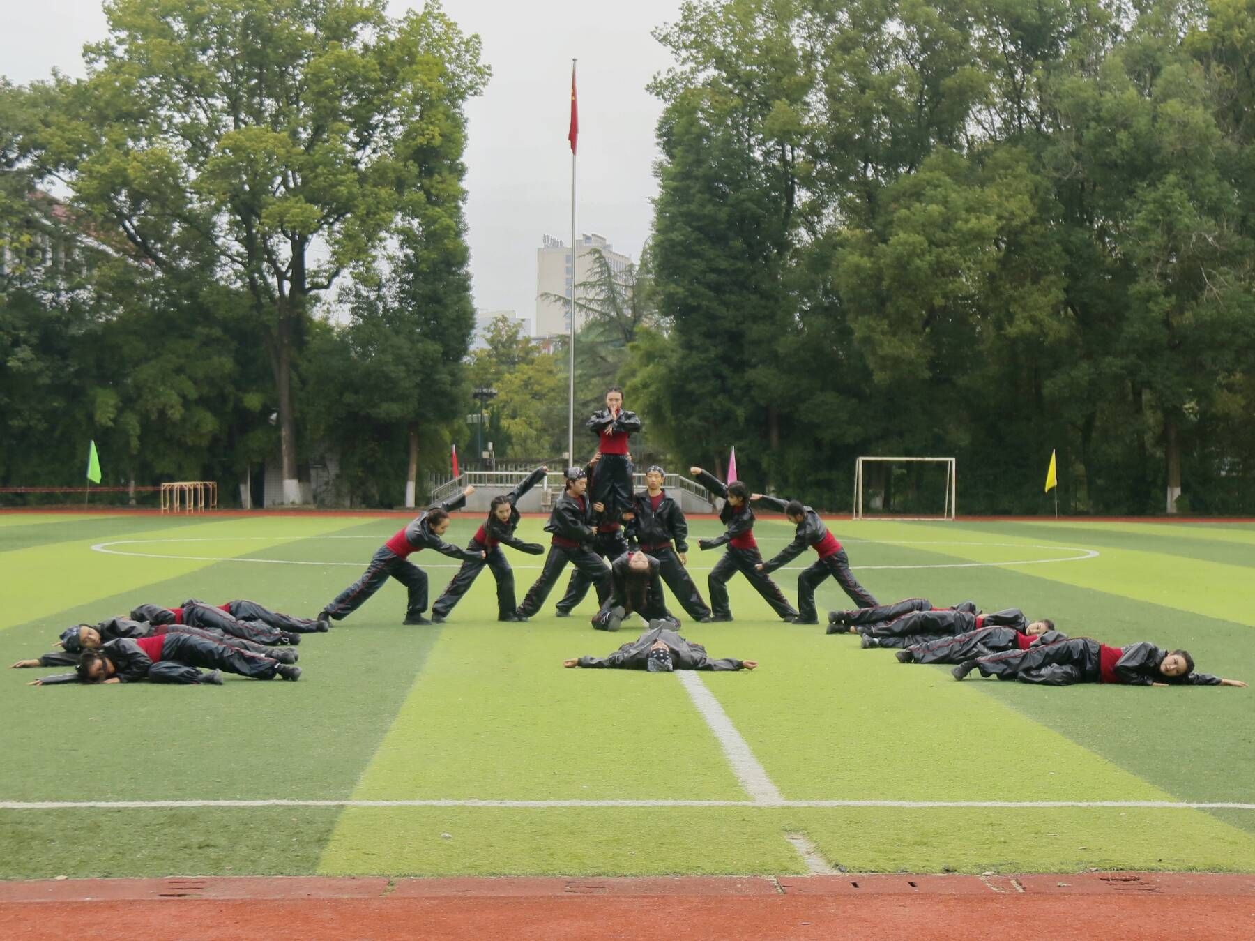 师生奋力奔跑场景