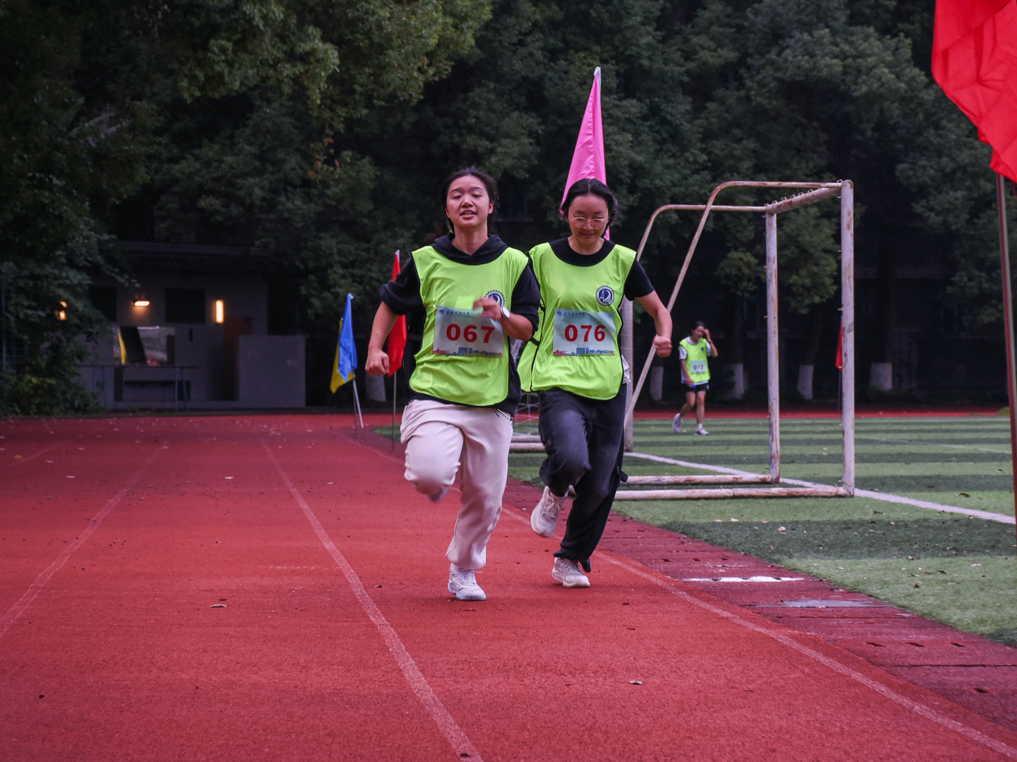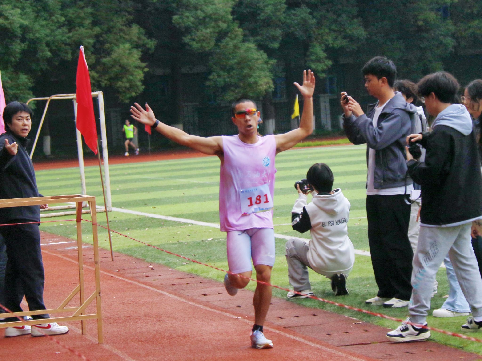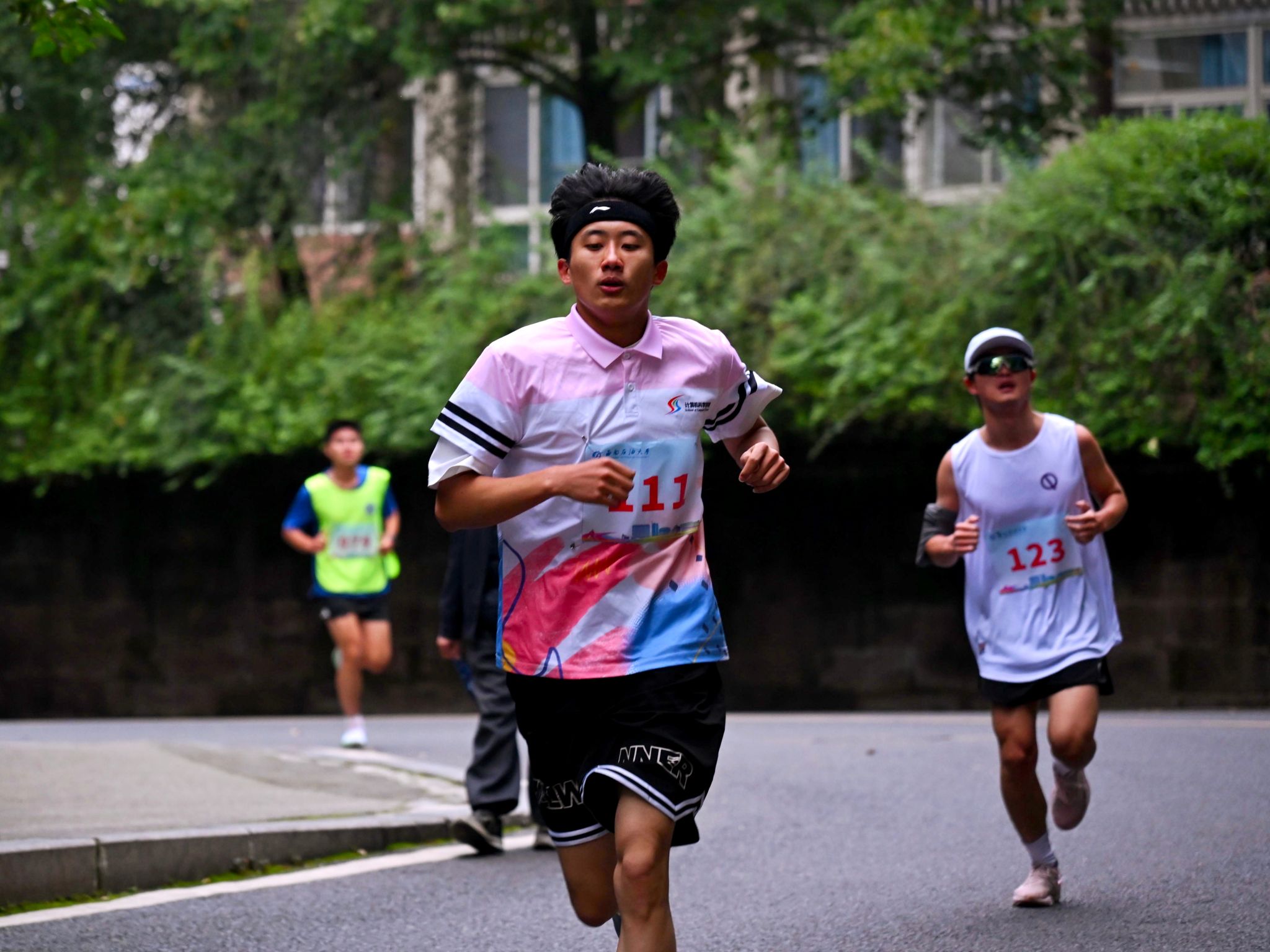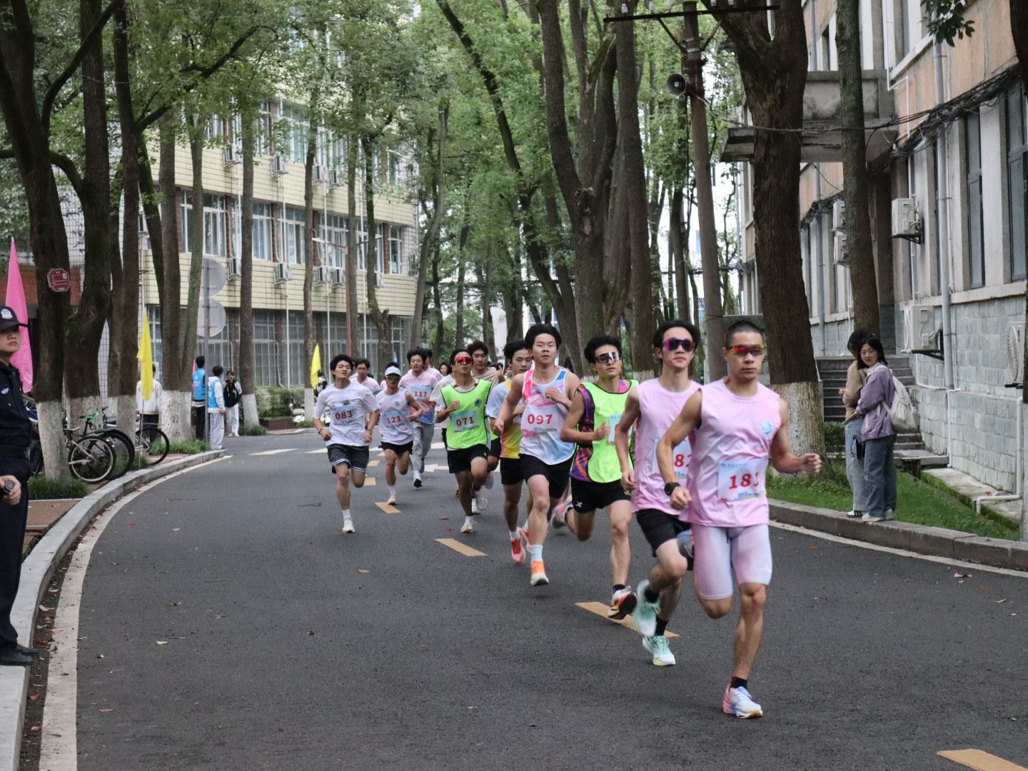 校区为参赛选手提供了周全的后勤保障:志愿者们穿梭其间,引导加油;安保人员全程巡视,确保安全;医护人员紧随其后,随时待命,共同为奔跑的选手们筑起一道坚实的后盾。