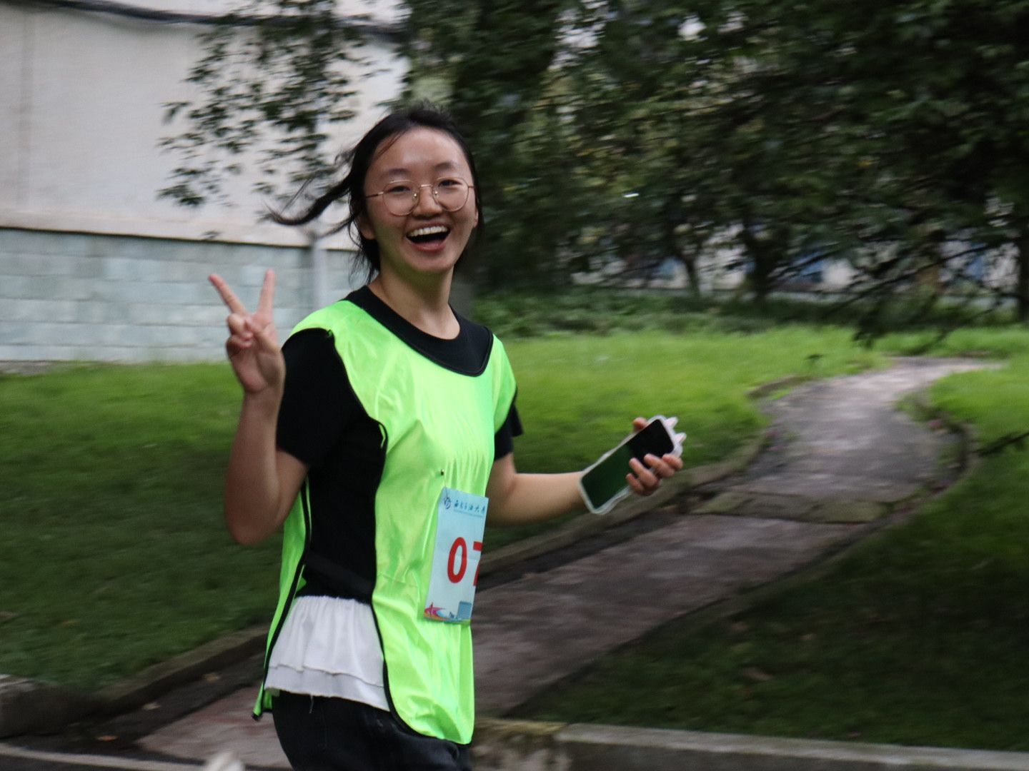 学生组女子第一名、电子信息科学与技术专业2023级学生张好分享说:“为了这次比赛我准备了很久,取得第一名真的很开心!我也希望有更多的同学可以参与到体育运动中来,共同奔跑!”