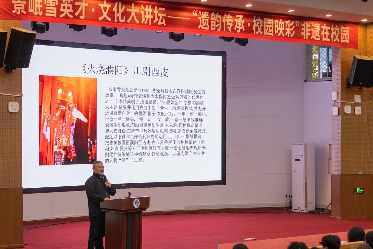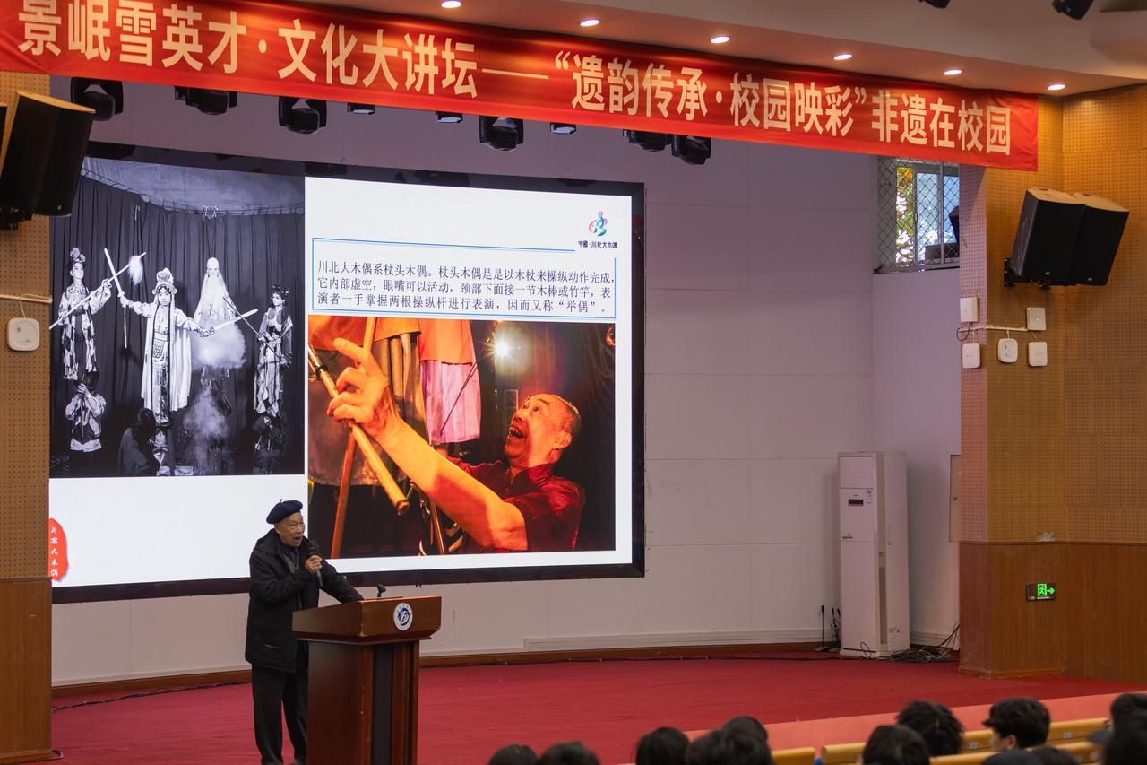 11月2日,南充校区在国际学术报告厅举办“‘遗韵传承·校园映彩’非遗在校园”文化讲座,300余名师生聆听讲座,领略了首批国家级非物质文化遗产川北大木偶的独特艺术风采。这次讲座是“景岷雪英才”文化大讲坛活动之一。