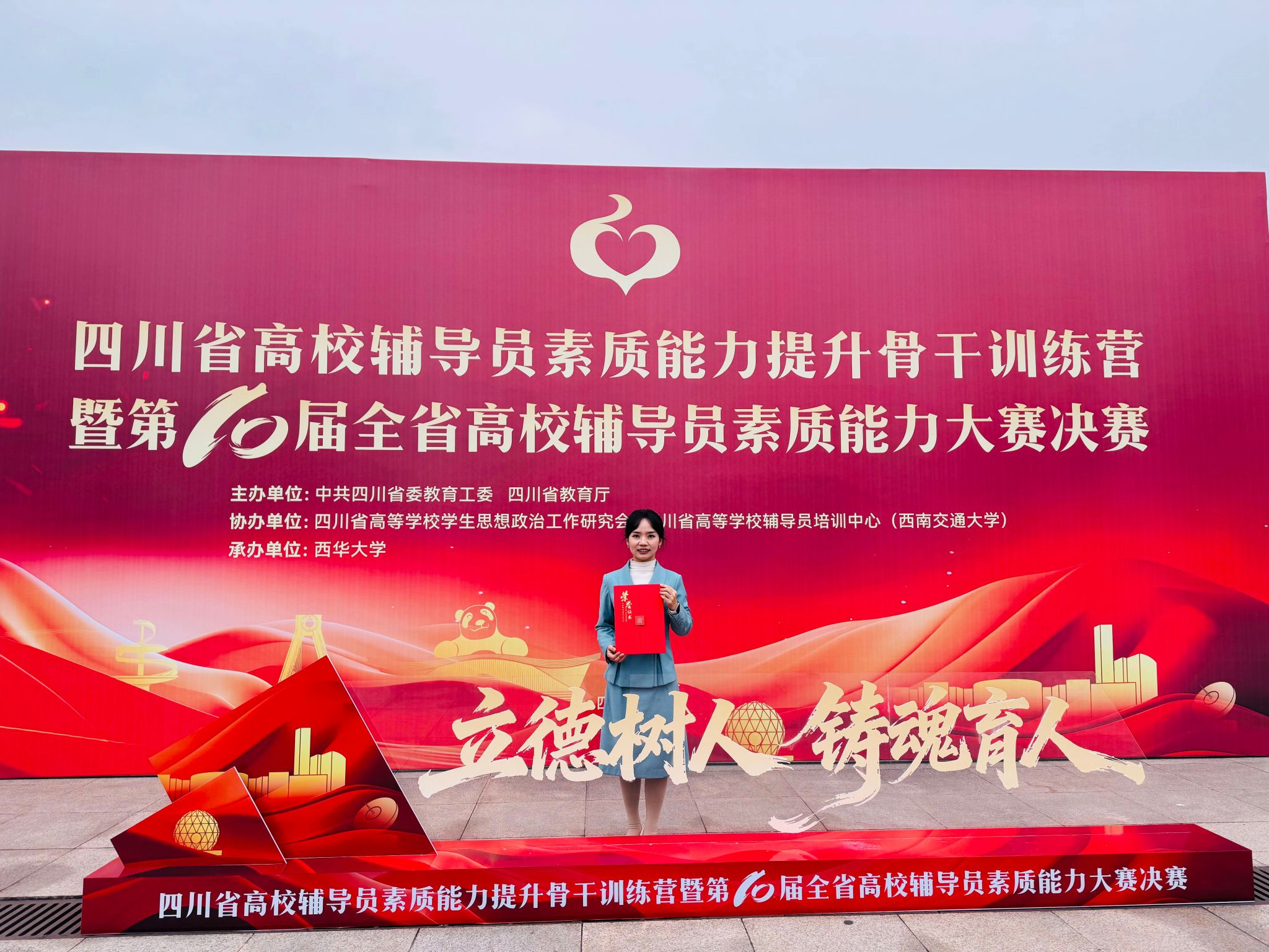 大赛由中共四川省委教育工委、四川省教育厅主办,是省内高校辅导员队伍高水平的能力比拼与交流平台,共吸引来自125所高校的166名辅导员参赛。赛事设置基础知识测试、学情分析、案例研讨和谈心谈话四个环节,全面检验辅导员的理论素养、专业能力及解决实际问题的水平。比赛中,薛静老师沉着应赛,展现了其过硬的职业能力和专业素养。
