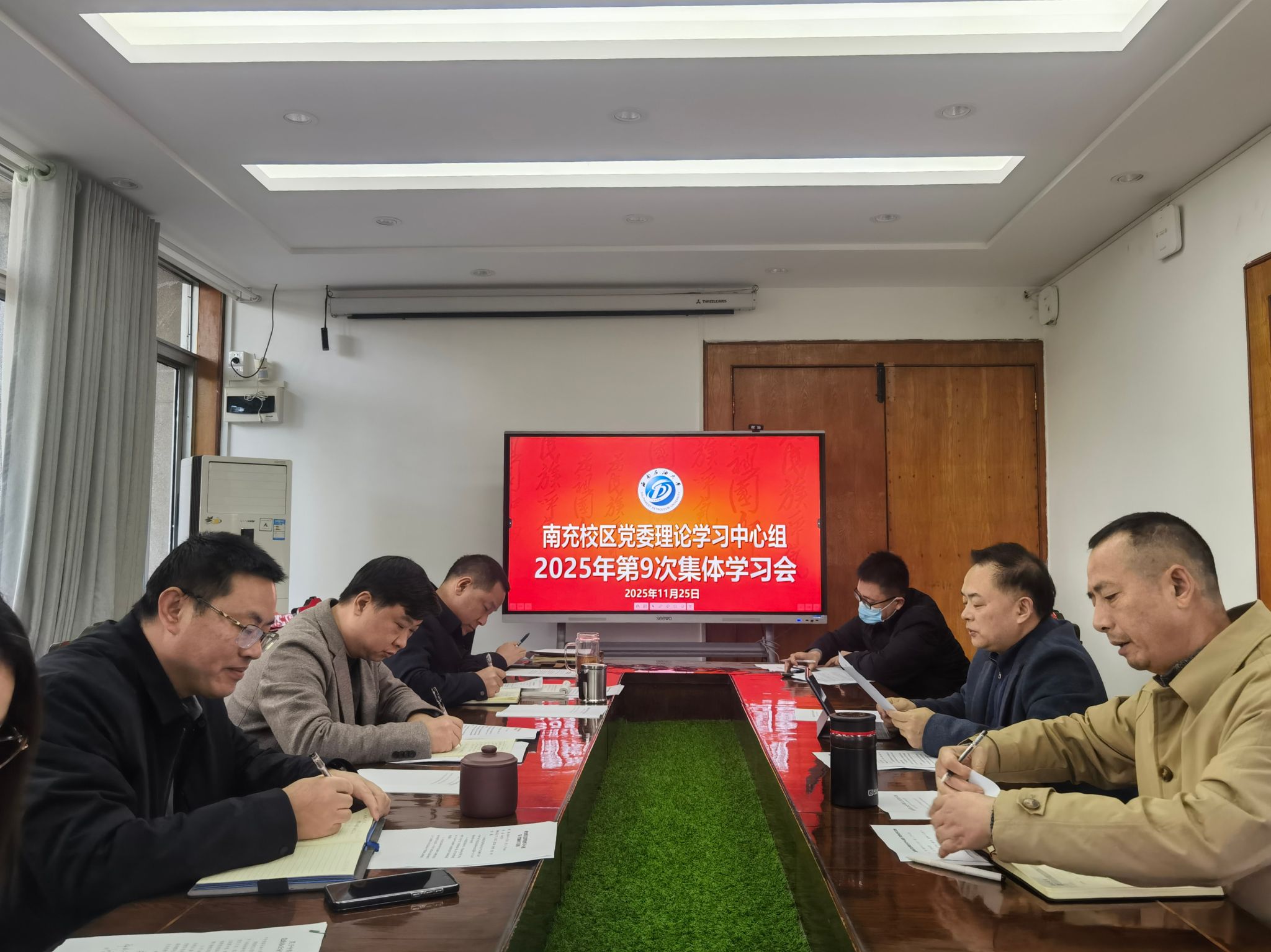 11月25日,南充校区党委理论学习中心组举行2025年第9次集体学习会,南充校区领导方可、覃鸿飞、郝江岭、谌贵辉、刘恒、李平,党政办公室有关同志参加学习。