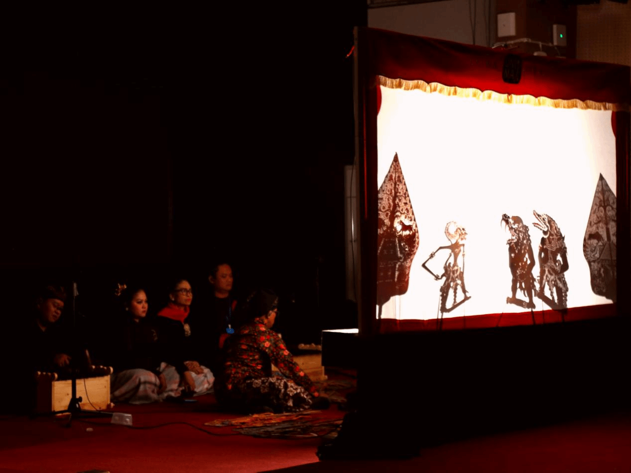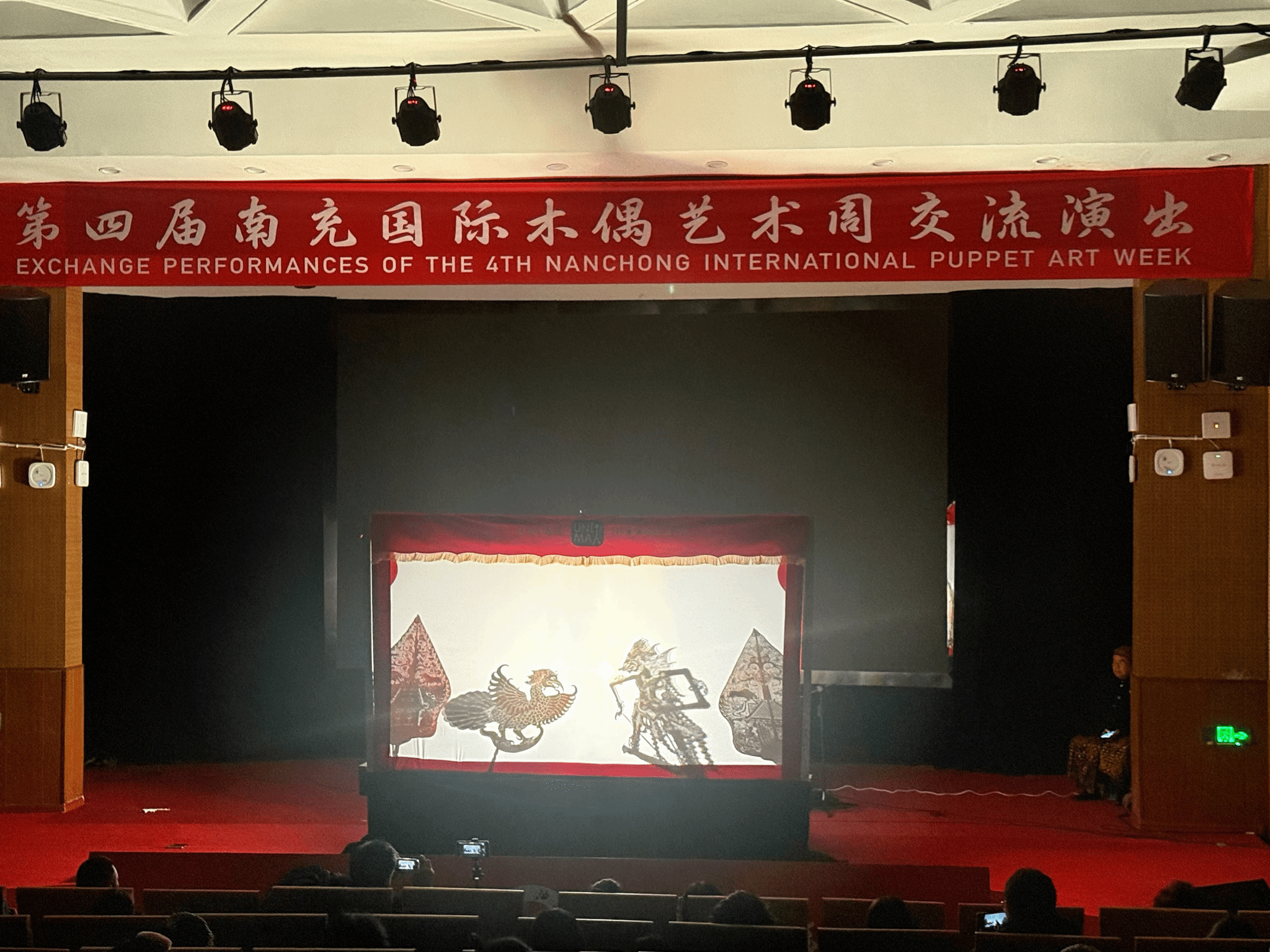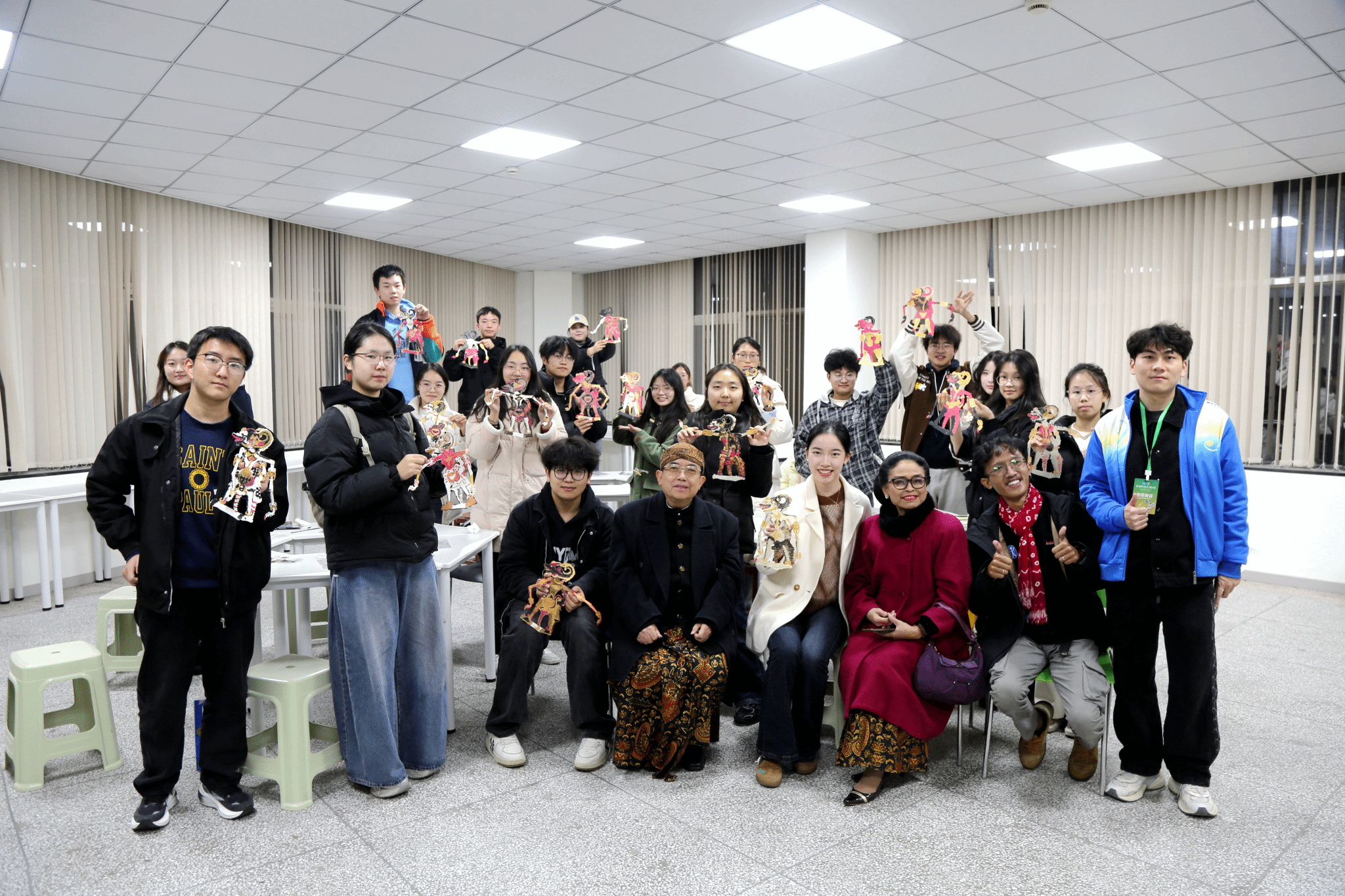 印度尼西亚国际木偶联会印度尼西亚中心在节目开演前,主动提出与校区30余名学生进行了文化交流活动。期间,该国木联印度尼西亚中心提前准备了哇扬皮影,中心主席迪马斯·萨莫德拉·鲁姆先生与副秘书长苏皮亚蒂·迪马斯女士现场展示了完整的皮影,现场展示各类皮影人物,介绍该国皮影文化艺术,并指导学生绘制皮影。