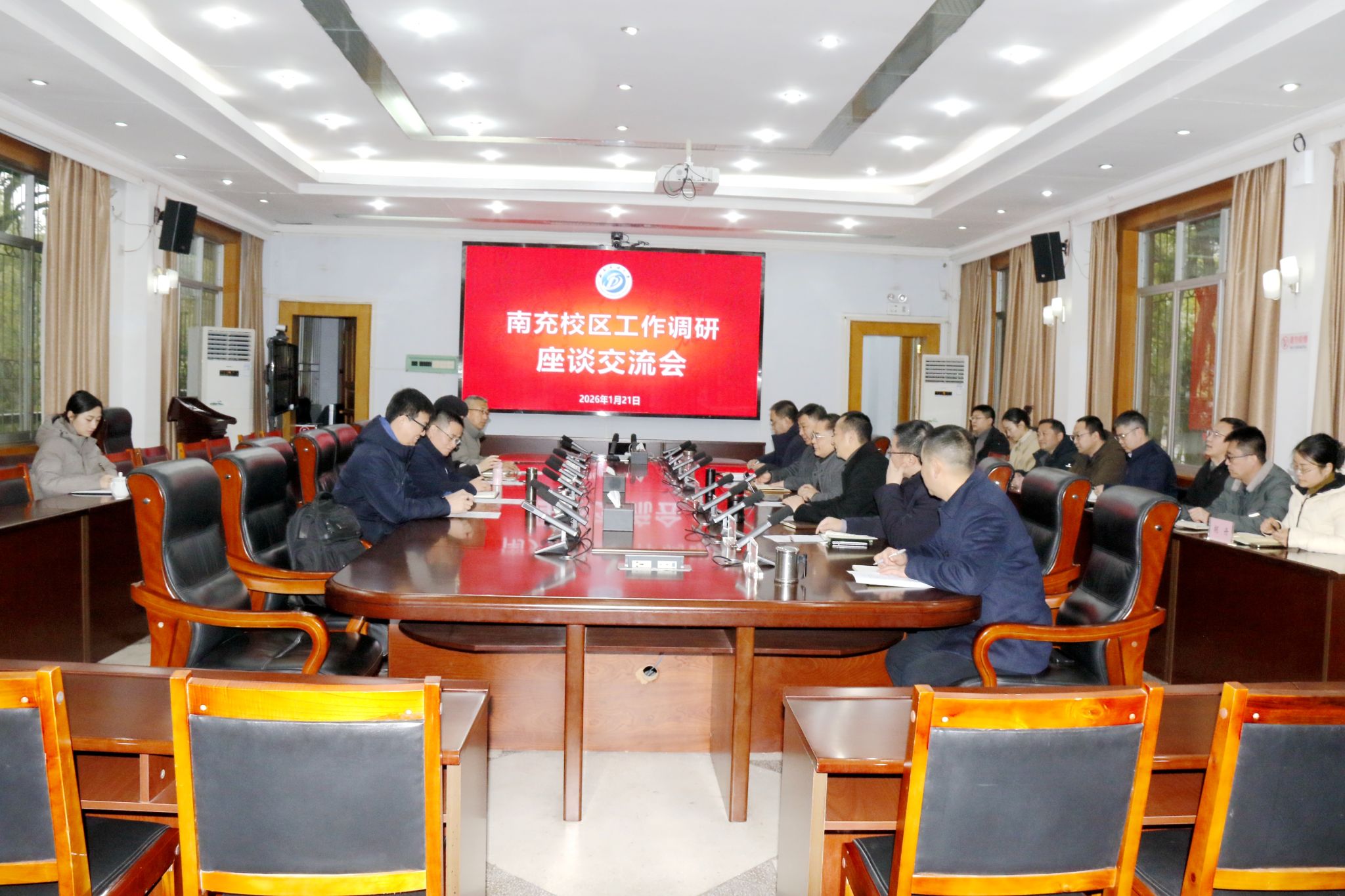 学校党委常委、副校长徐龙华前往南充校区调研建设情况,并与南充校区党员干部开展座谈交流。南充校区党委常务副书记方可主持会议。