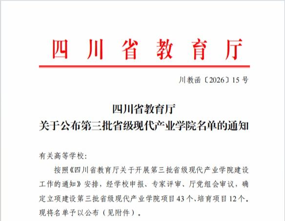 近日,四川省教育厅公布了第三批省级现代产业学院名单,南充校区牵头申报的“先进制造与真空技术产业学院”成功获批立项建设。这标志着学校在产教融合、校企协同育人领域再获重要新成果,为服务区域产业高质量发展注入了新动力。