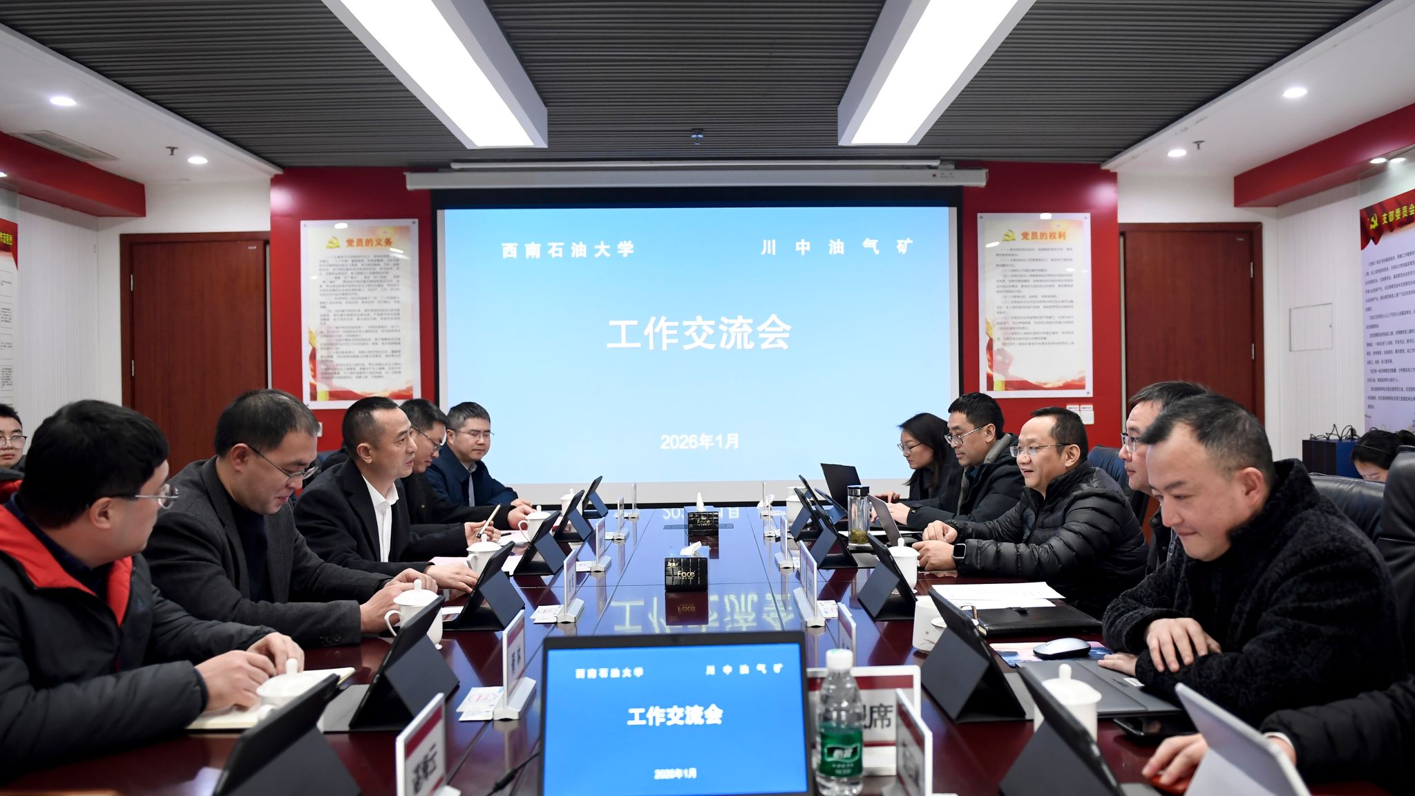 1月26日,南充校区党委副书记、常务副校长覃鸿飞率队前往中国石油西南油气田分公司川中油气矿,就推进校企合作事宜,与矿长、党委副书记青春座谈交流。