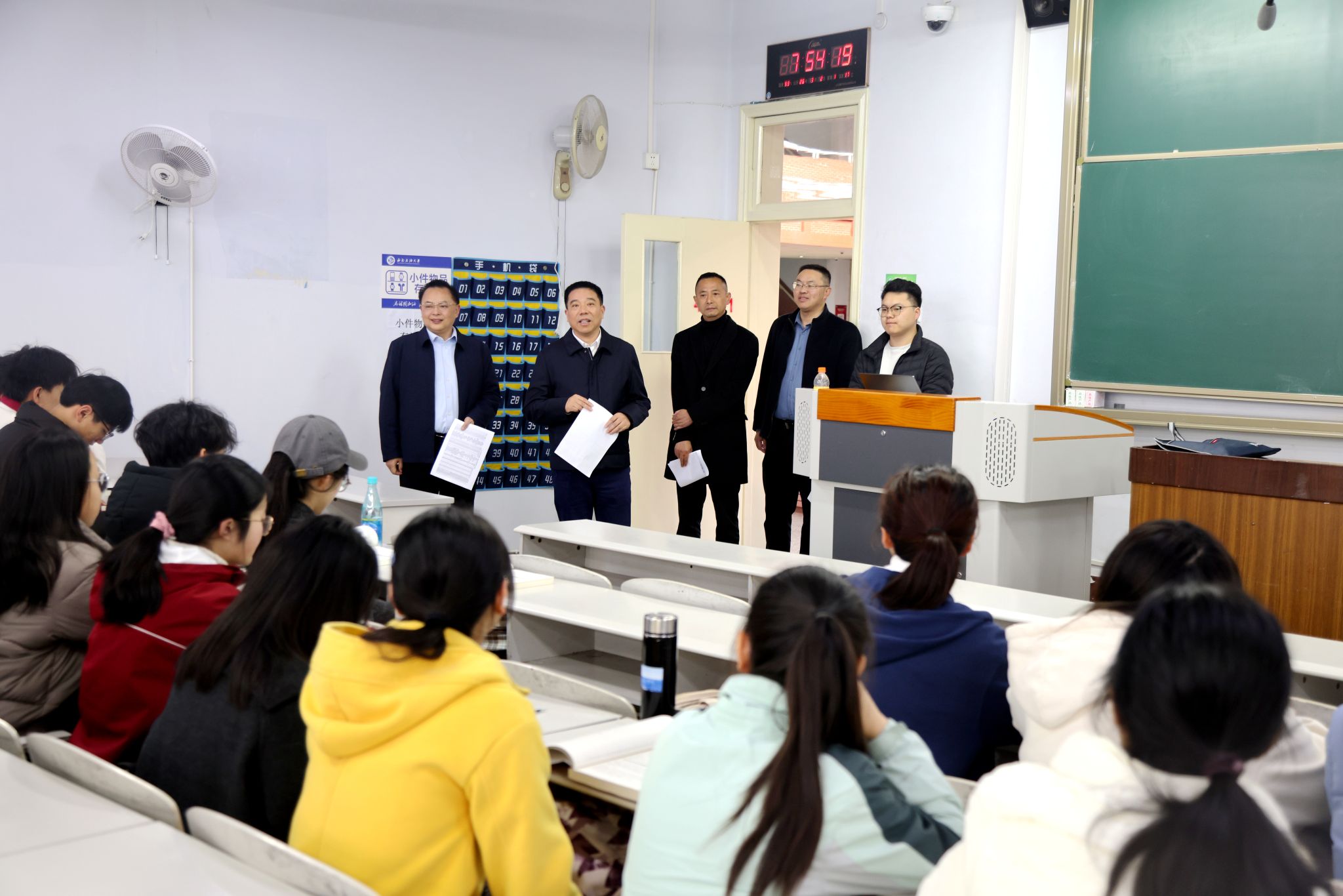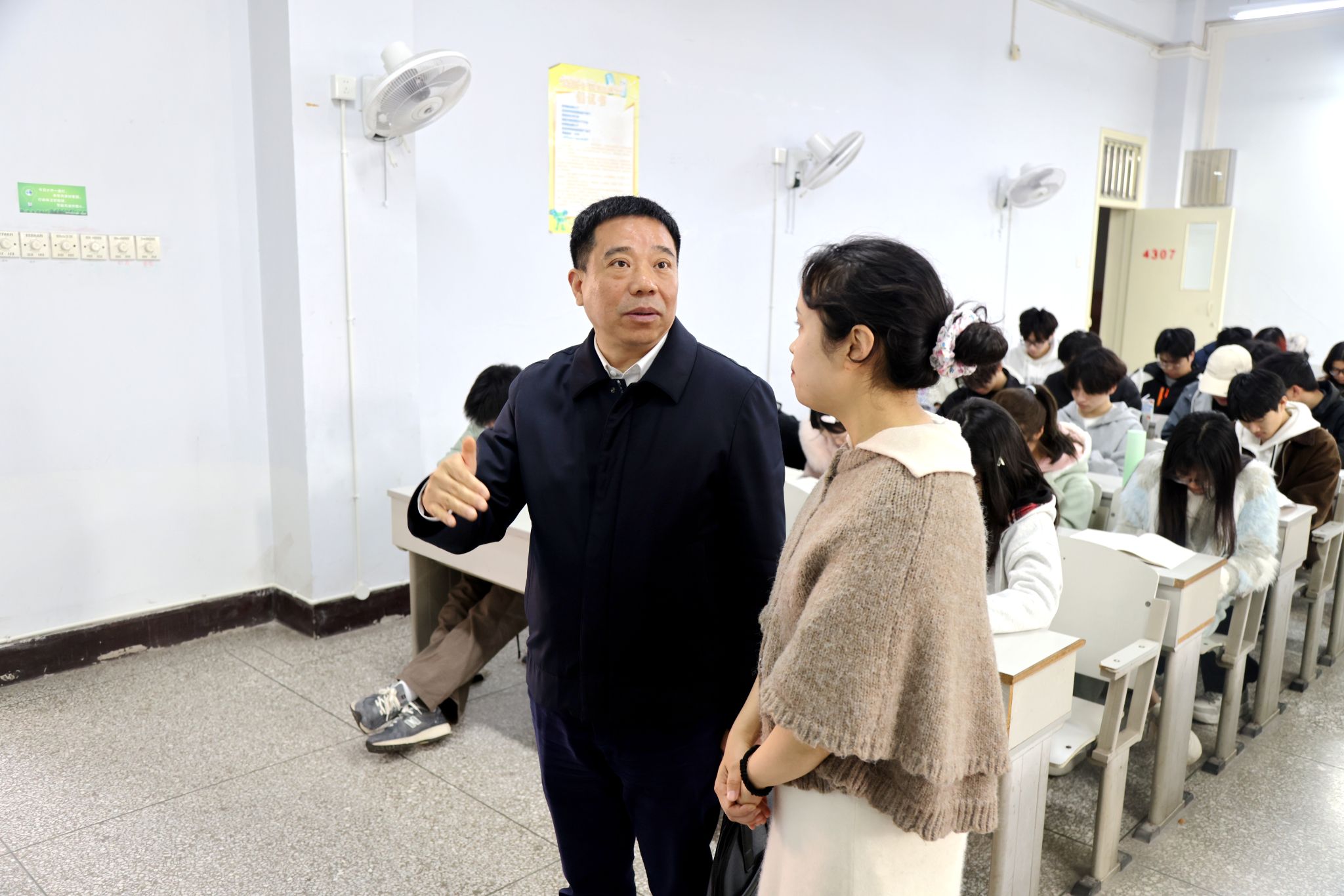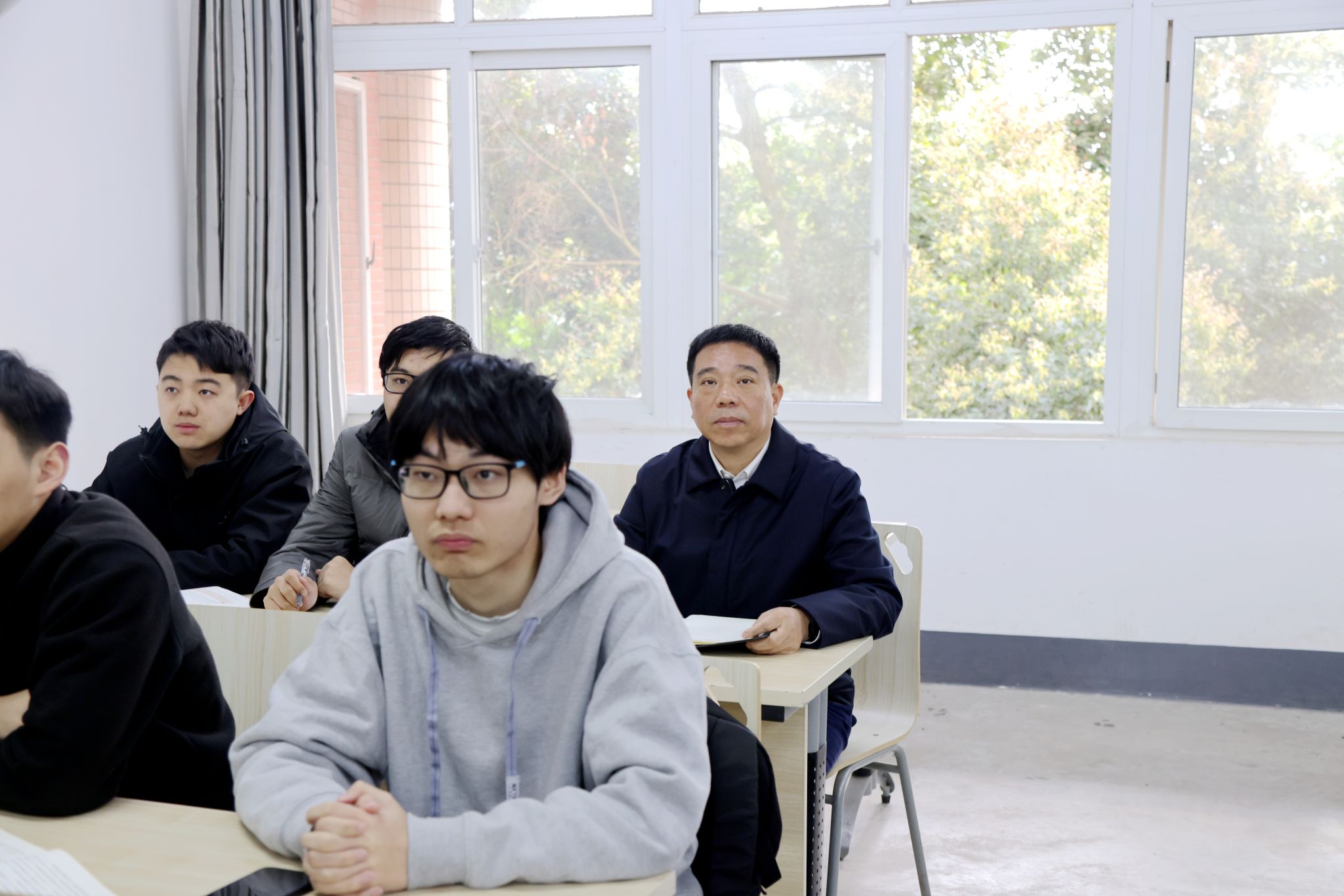 郭建春与同学们一同听取《马克思主义基本原理》《毛泽东思想和中国特色社会主义理论体系概论》课程。他为课堂效果点赞,并建议任课教师要继续加强理论研究,拓展课堂教学深度,提升课堂教学能力,创新教育教学方法。鼓励同学们要树立远大目标,做好学习规划,保持学习干劲,勤奋努力,力争在新学期“百尺竿头更进一步”。
