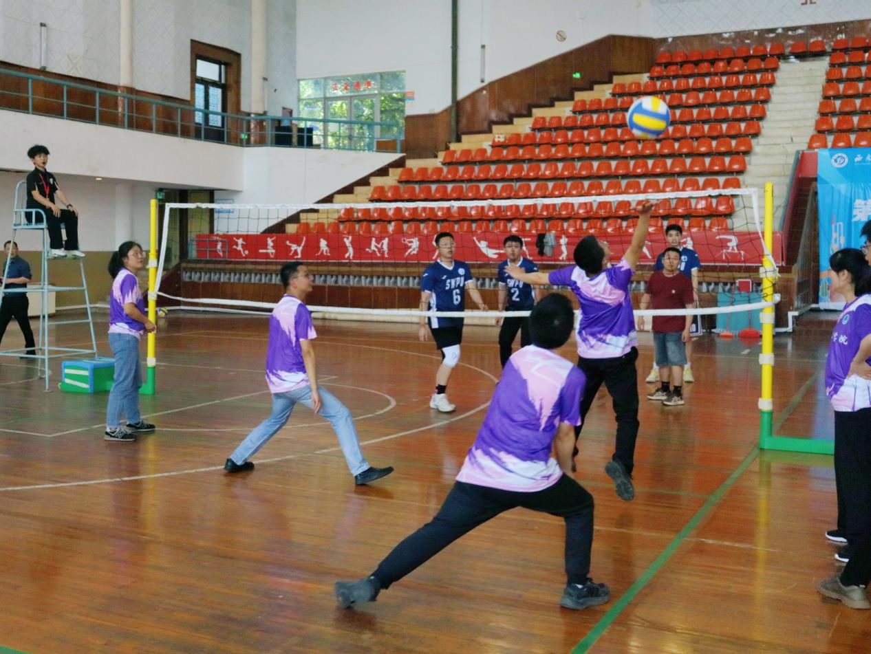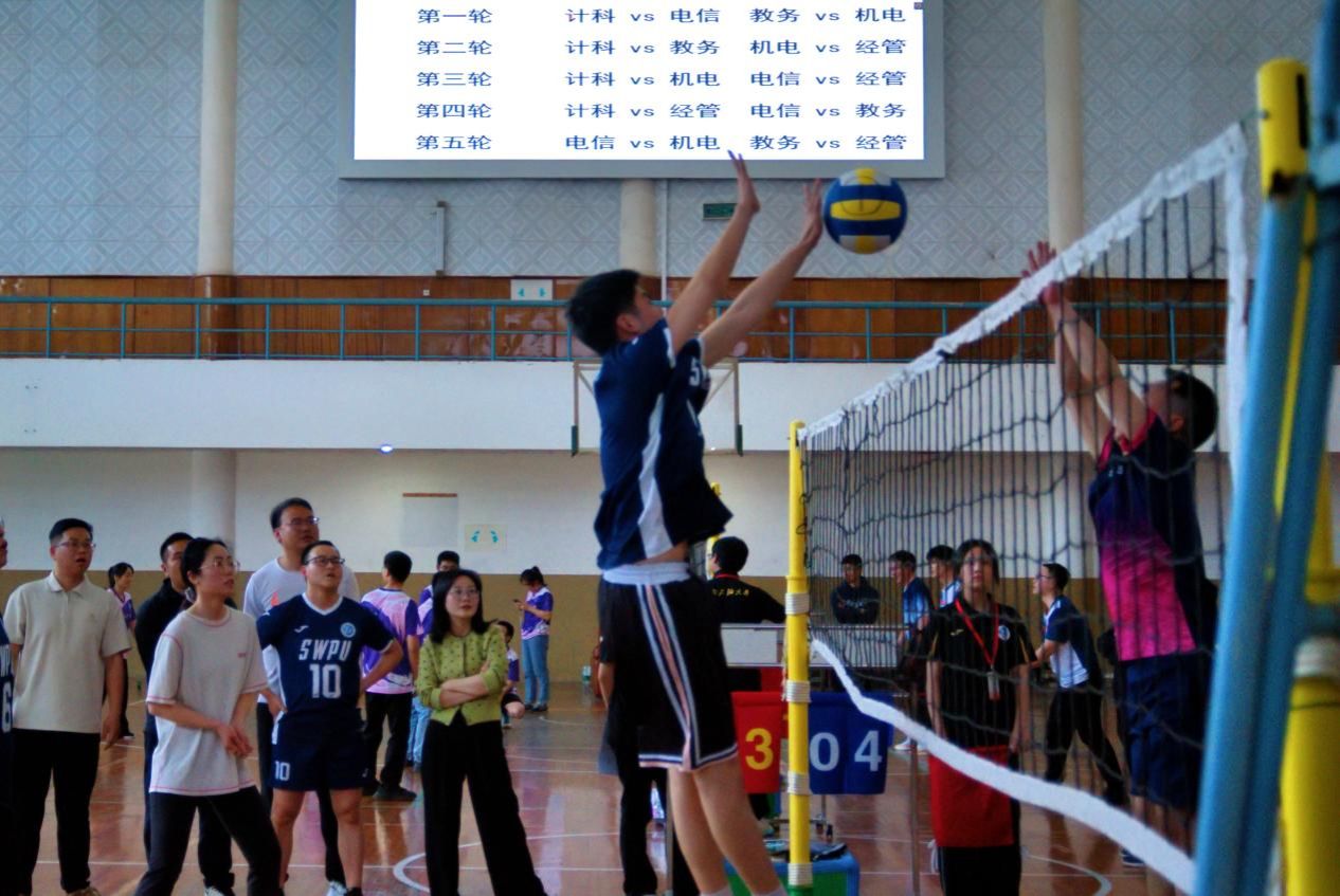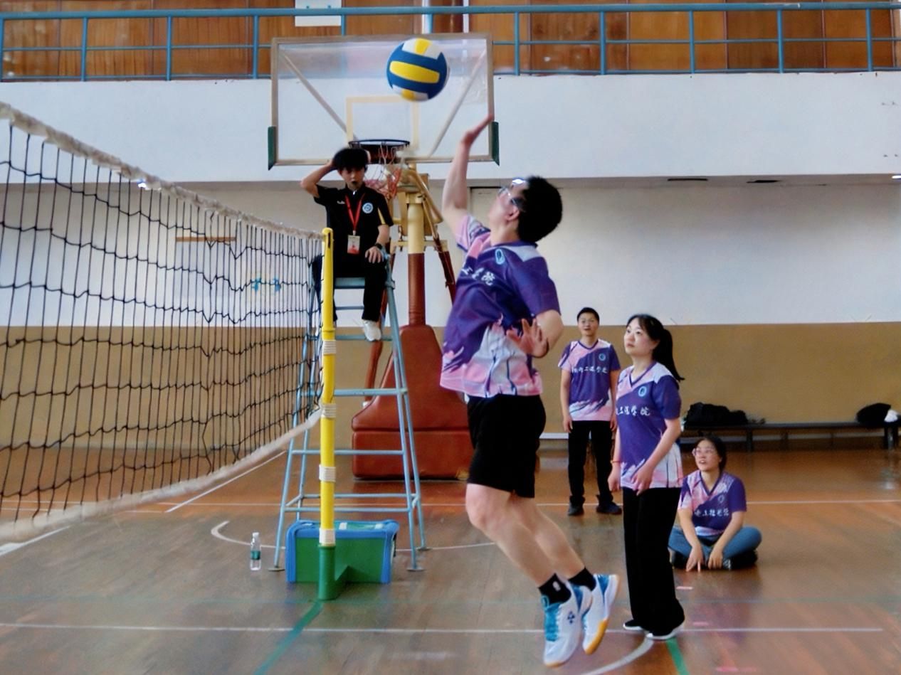 开幕式后,首场比赛正式拉开帷幕,对阵双方为计科院与电信院。赛场上,运动员们精神抖擞、配合无间,发球、传球、扣球、拦网行云流水,每一次精准配合、每一次奋力扑救,都赢得现场观众的阵阵喝彩。气排球在空中来回穿梭,彰显着拼搏与协作的精神,点燃了全场的运动热情。最终,计科院以2:0的比分拿下第一场胜利。