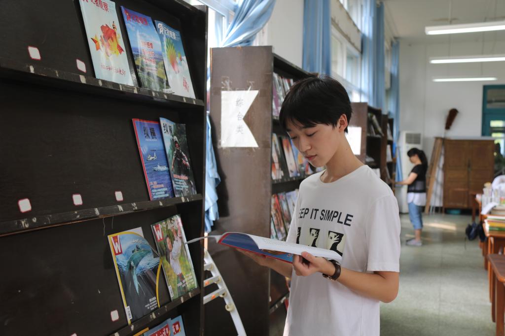 徐烽尧在图书馆看书
