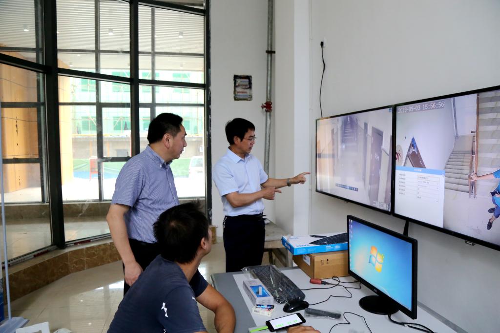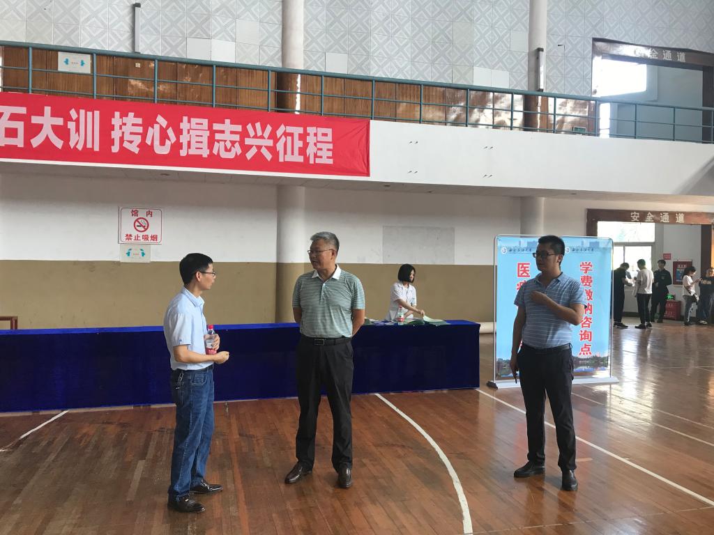 校区领导张光君陪同学校领导赵正文检查指导迎新工作场景