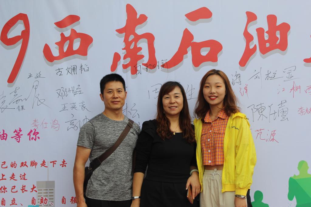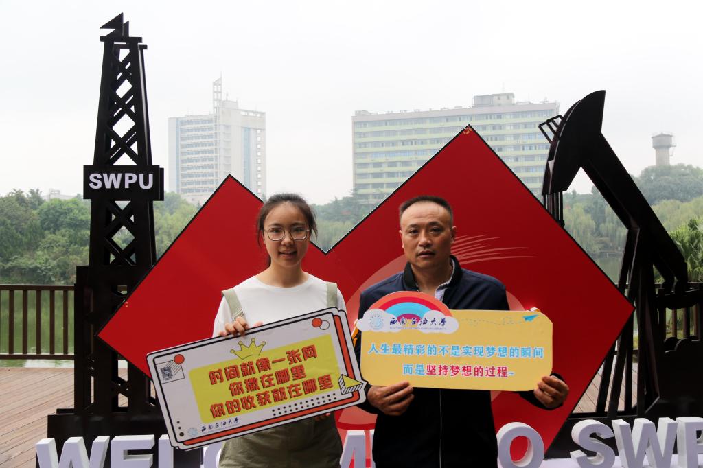 校区在龙井湖观景平台上摆放了“WELCOME TO SWPU”主题合影墙。合影墙包含了磕头机、井架等石油文化元素,并与美丽的龙井湖景色巧妙地结合在一起,吸引了许多新生和家长纷纷前来合影留恋。在体育馆门前设置了印有学校Logo、石大精神等内容的巨幅新生签名留影墙,让新生留下自己入学时的最美的记忆,受到了新生的欢迎,纷纷在签名墙上留下属于自己的印记,在合影墙前拍下“我”与石大的第一张合影,定格下入学时的青春瞬间。体育馆报到点,新生和家长正驻足观看大学生全媒体中心播放的学校宣传片、校园风景视频、央视科教频道采访校区学子的草莓采摘器专题片,新生及家长纷纷点赞校区的建设发展、办学实力和人才培养成果。