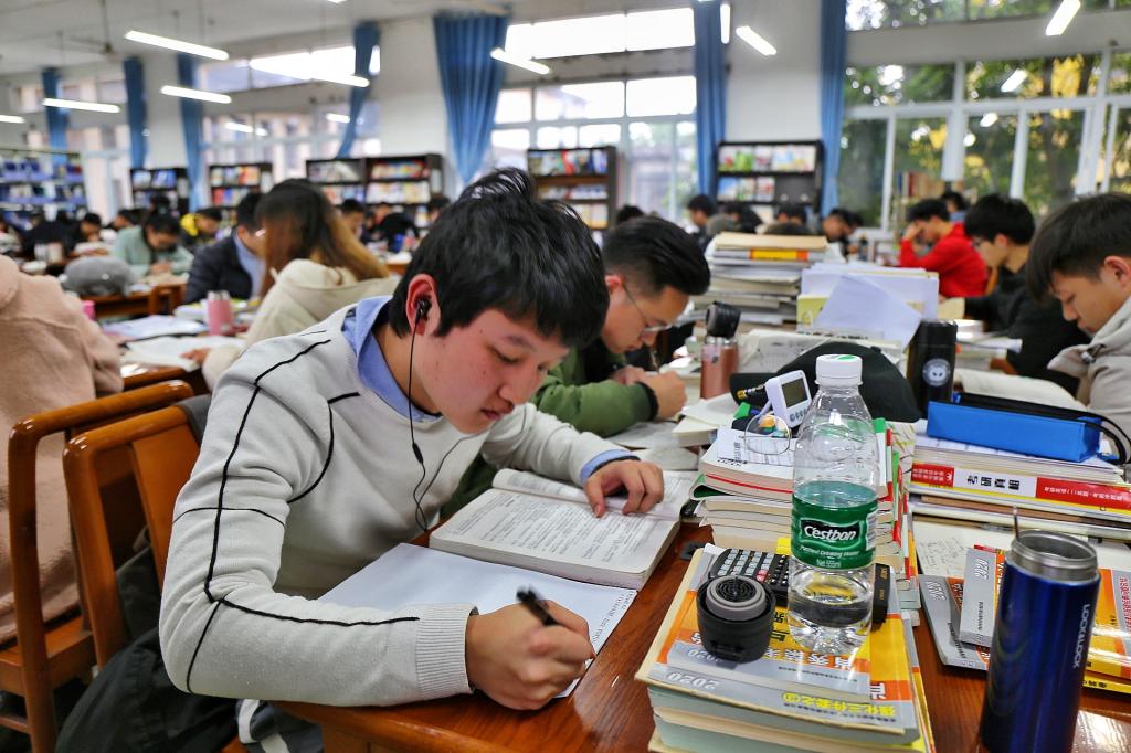 图书馆、考研自习室、教室、天台......无论哪个地方都能成为他们复习的场所,只要有一本书、一支笔,他们就能在那待上一整天。在学校的每个地方,都能看到他们的身影,他们的背影,总是孤独而耀眼。看到他们,我们不由得反省自己是否有认真学习,是否有浪费上课时间开小差……