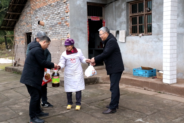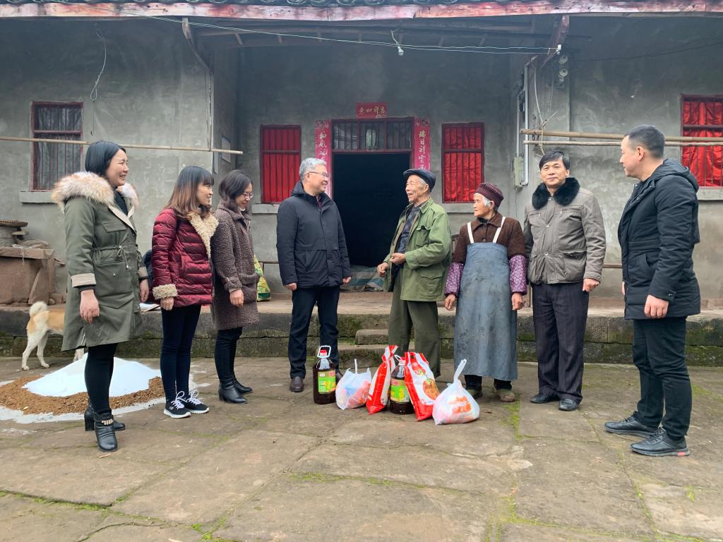2020年春节临近,为扎实推进结对帮扶工作,把新春问候和祝福及时送到脱贫群众身边,1月9日下午,南充校区副校长王胜军带队,30余名帮扶责任人赴蓬安县锦屏镇鹅项颈村开展了节前走访慰问活动,给60余户帮扶对象送去了大米、菜籽油、年货礼包等节日慰问品,将学校的深切关怀和新春祝福送到了村民的心坎上。