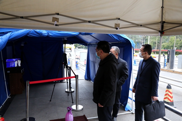 张光君考察西华师范大学校门体温检测点人体红外测温报警仪场景