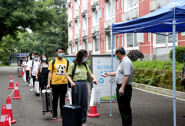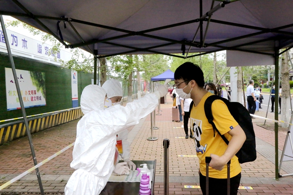 “返校学生”接受体温检测进入校园