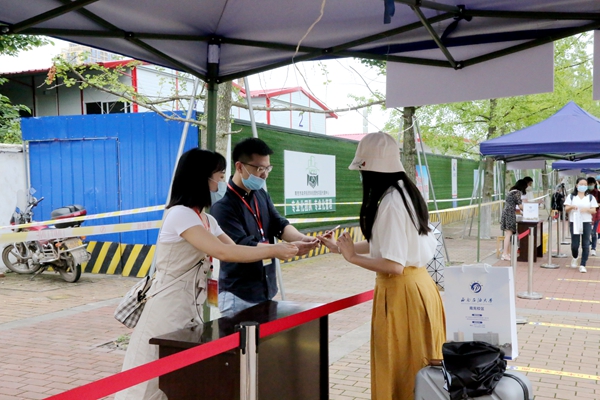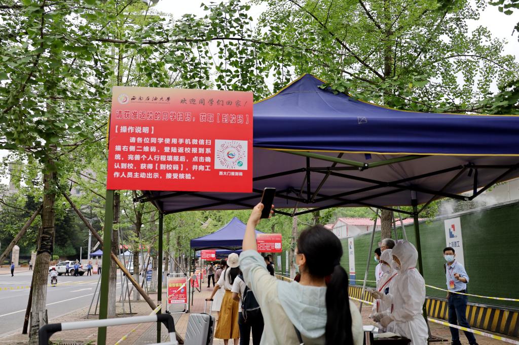 “返校学生”出示“到校码”接受核验进入校园