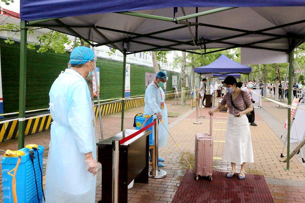 “返校学生”通过防疫消杀区