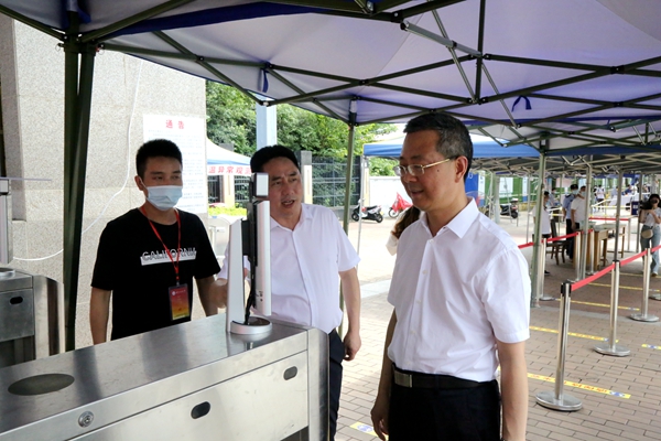 6月12日,南充市人民政府副市长、党组成员沈一凡带队检查指导南充校区学生返校复学疫情防控工作,确保开学工作安全有序。南充校区领导张光君、赵刚、覃鸿飞、王胜军,校区有关职能单位负责同志陪同检查。