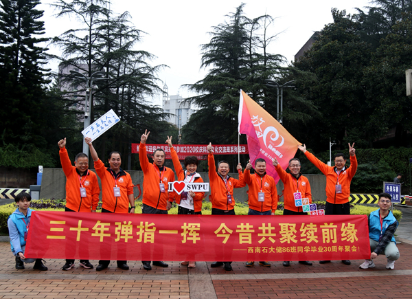 秋风送爽重温石大梦,情系南充再续同窗情。10月31日,在喜迎学校建校62周年之际,南充校区迎来一批特殊的朋友。师资77级、储运86级、应化86级、环保86级4个专业的100余名校友重返母校开展返校聚会纪念活动。阔别数十载,怀着对母校的无比思念之情,来自四面八方的校友相聚龙井湖畔,回顾流年岁月,同踏往昔漫漫求学路,共忆韶华琅琅读书时。