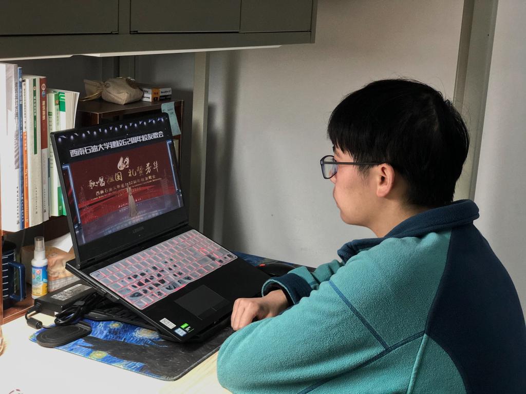进入直播间,映入眼帘的就是满屏的祝福和期盼。歌会以测绘工程专业2011届校友陈诗茂的一首经典歌曲《最美的太阳》开场,潮涨潮落岁月如梭,让无数校友回忆起了自己在西南石大的点点滴滴,为之感动、为之欣慰。2019级数字媒体专业在校生陈璟霈演唱了歌曲《故乡的云》。大气悠扬的旋律,加上感人至深的歌词,让在场观众即使隔着一面屏幕,也能够回到那熟悉而又久别的石大校园。