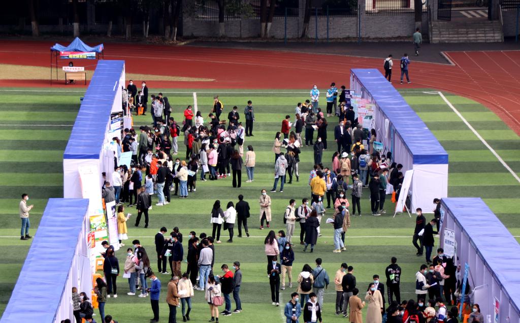 11月19日,南充校区2020年秋季企业线下双选会在田径场成功举办,校区1400余名毕业生参加了此次双选会。校长助理、南充校区常务副校长赵刚,南充校区党委副书记、纪委书记覃鸿飞,党群工作部(工会)、学生工作部(团委)、各学院相关负责人到场指导。