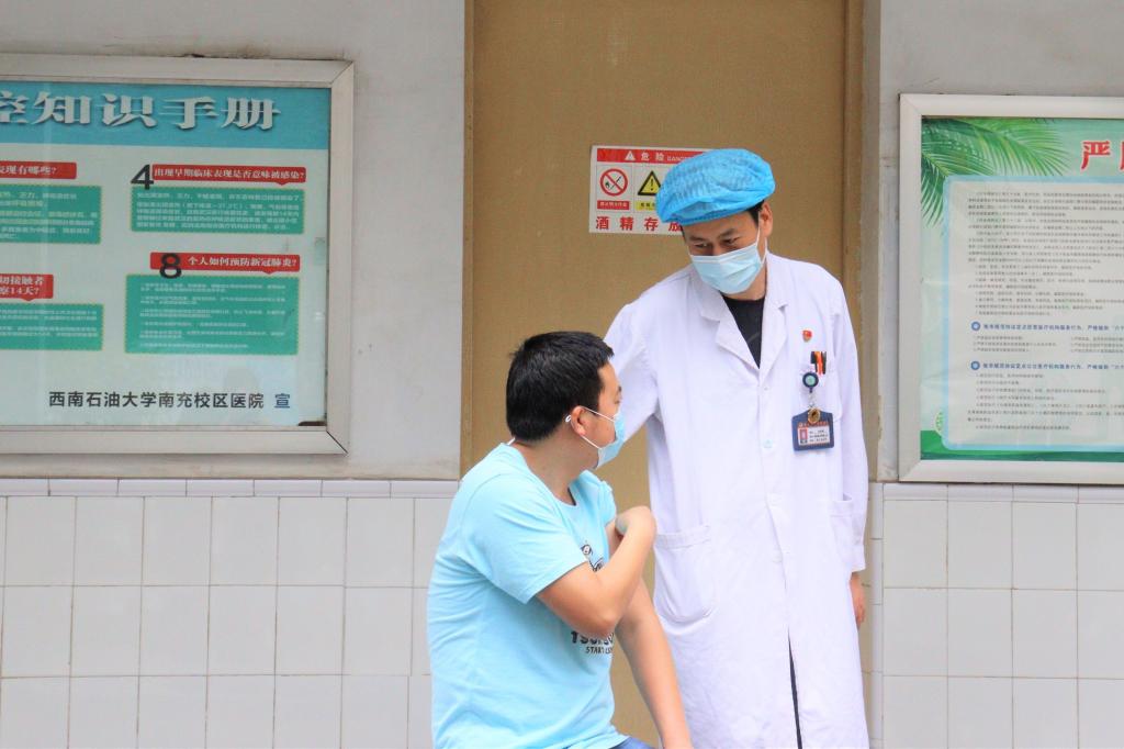 校区领导带头接种新冠疫苗,为校区师生作表率。校区领导接种新冠疫苗后,亲切地问候现场的医务人员,询问了本次接种的流程设置、人员配置、应急预案等情况,并强调,要加强宣传教育,多部门统筹协调,共同做好南充校区新一轮新冠疫苗接种工作,做到应接尽接,构建好校区的防疫屏障。
