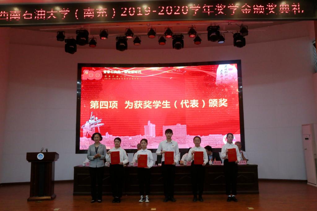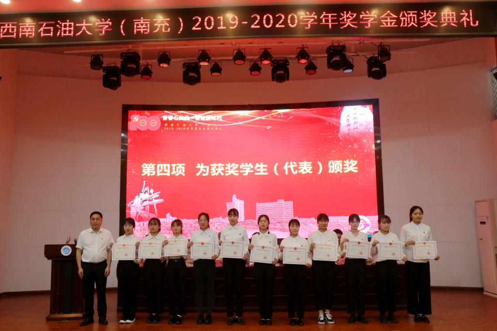 5月27日,南充校区在国际学术交流中心举行“青春心向党·奋进新时代”2019-2020学年度奖学金颁奖典礼,对荣获国家奖学金、国家励志奖学金、校长奖学金、中国石油奖学金等7项奖学金的266名优秀学生进行表彰奖励。学校党委常委、副校长刘向君,校区领导张光君、赵刚、覃鸿飞、王胜军、谌海云,学校教务处副处长杨火海出席颁奖典礼。