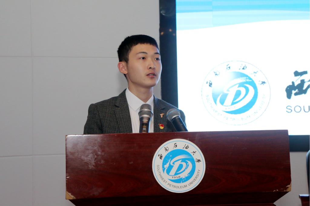 南充校区党委副书记、纪委书记覃鸿飞为中石油优秀学生奖学金获得者颁奖