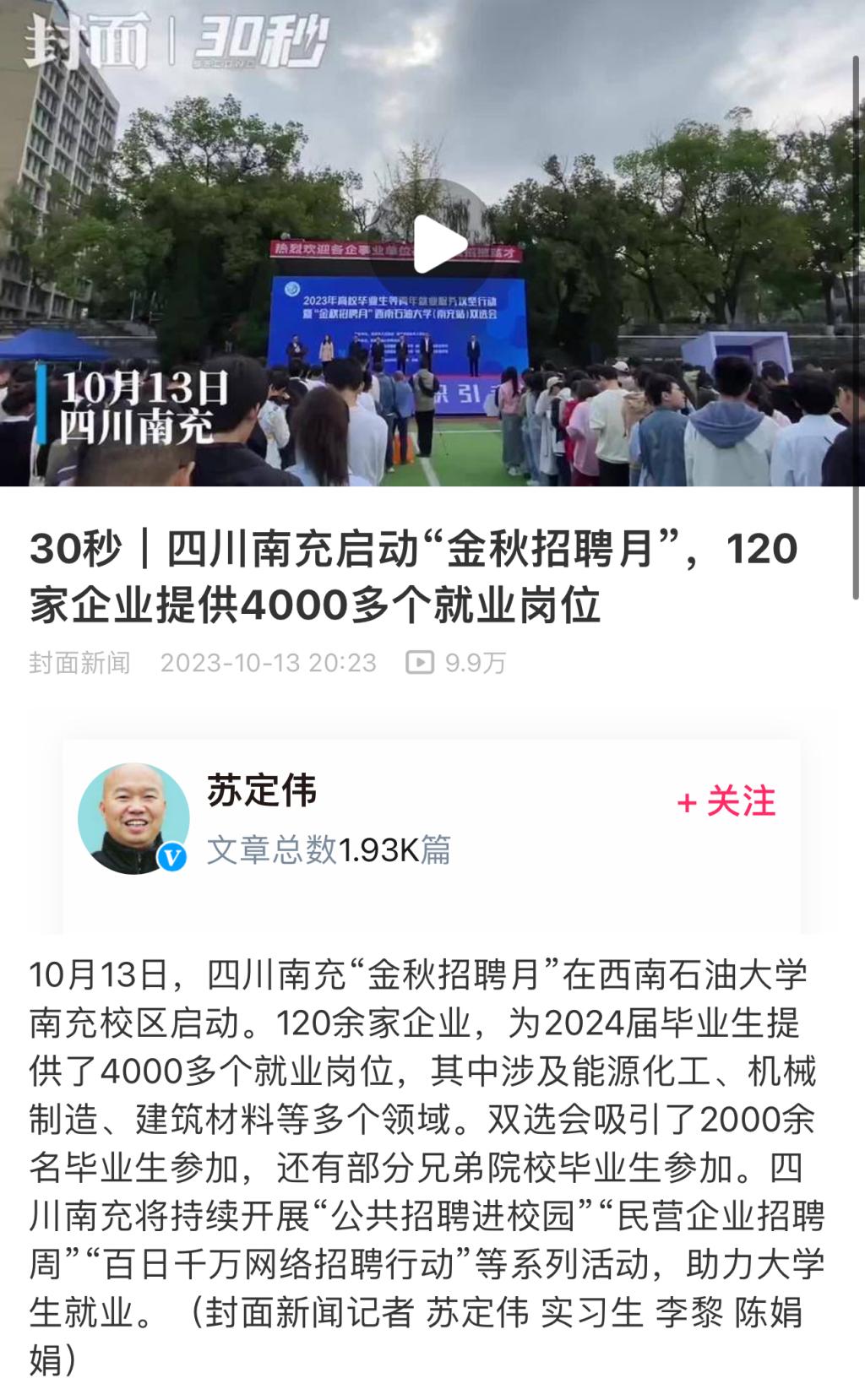 封面新闻报道截图