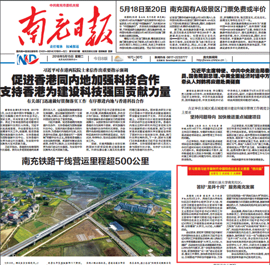 5月15日,南充日报头版以《西南石油大学南充校区:答好“龙井十问”服务南充发展》为题,在学习贯彻习近平新时代中国特色社会主义思想“四川篇”版面,重点报道对校区积极开展“大学习、大讨论、大调研”活动。