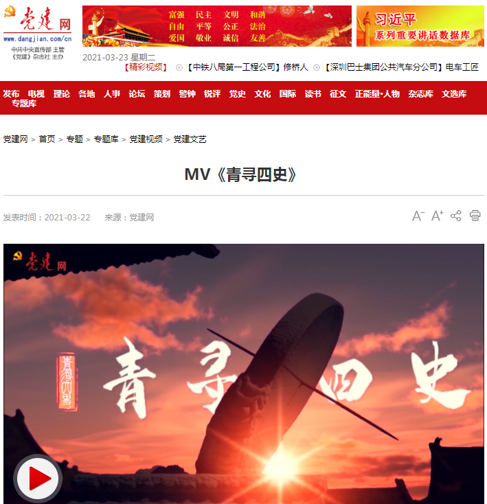 3月22日,中共中央宣传部党建网发布校区原创MV《青寻四史》。
